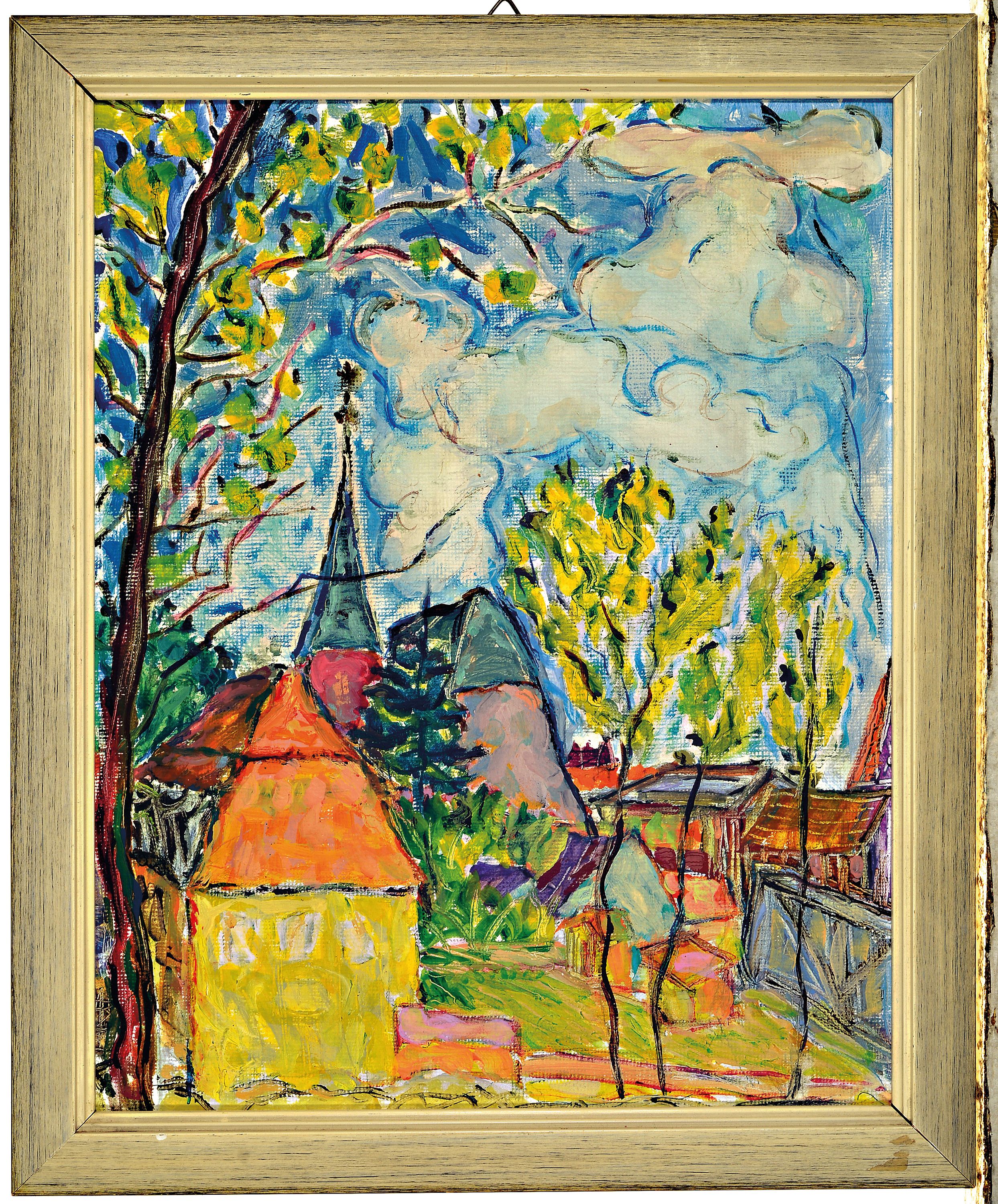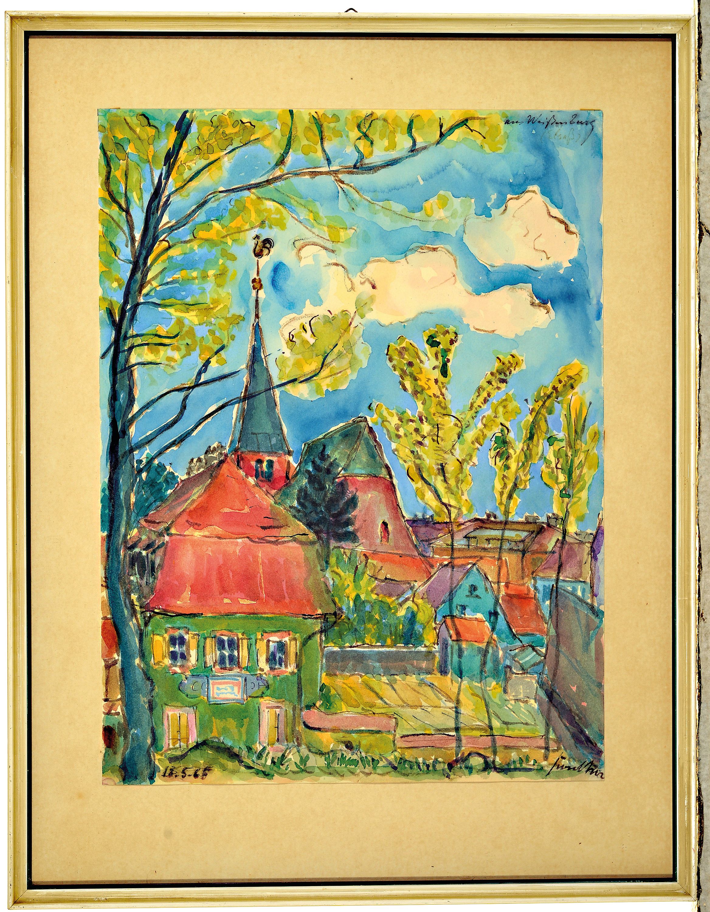 Elsass, Öl/Pappe und Aquarell, Rahmen 34x28 und unter Glas gerahmt 53x40 cm, Abb.