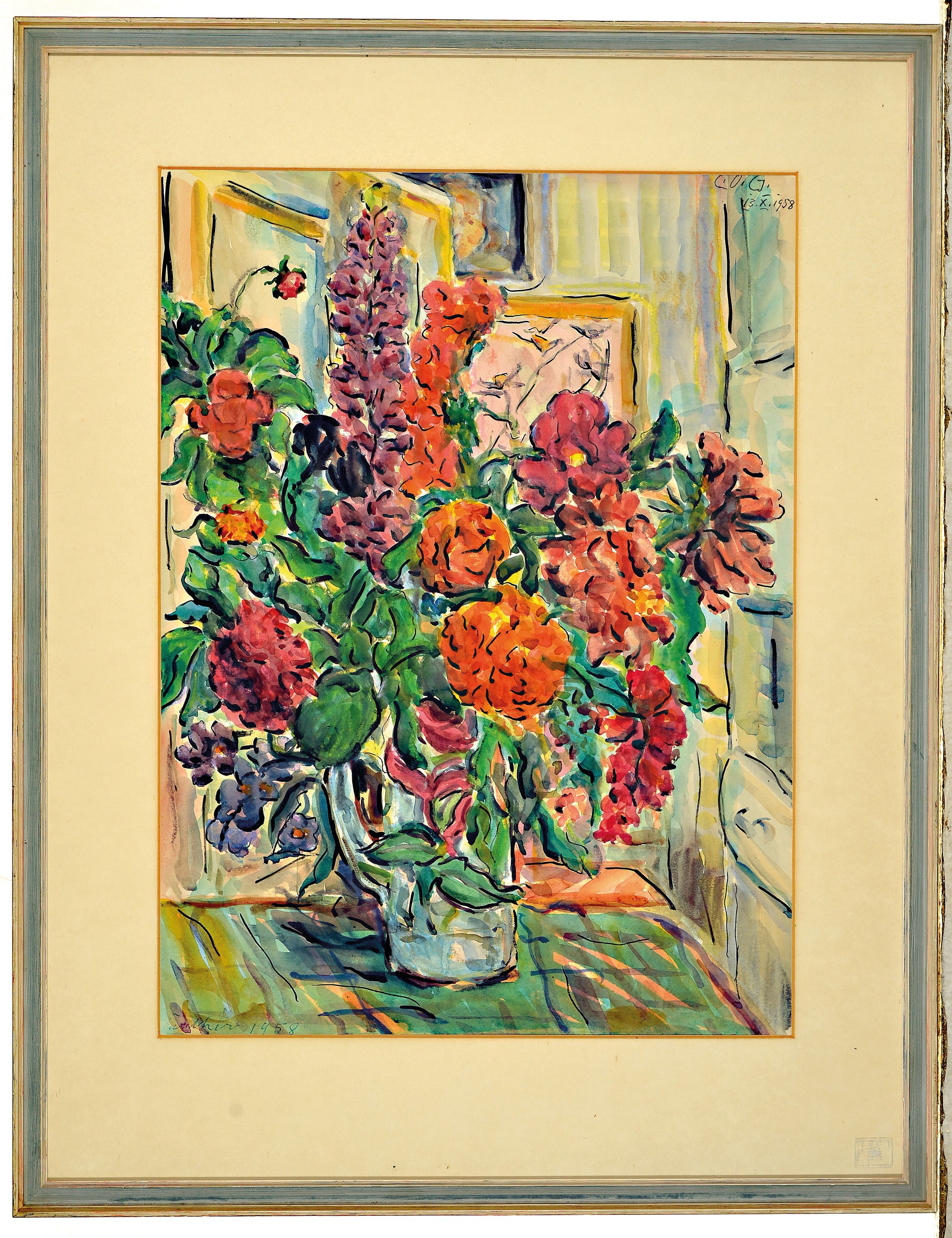 Carl-Otto Günther, 1909 Bruchsal-1974 Kandel , Aquarell, Blumenstillleben, 13.10.1958,