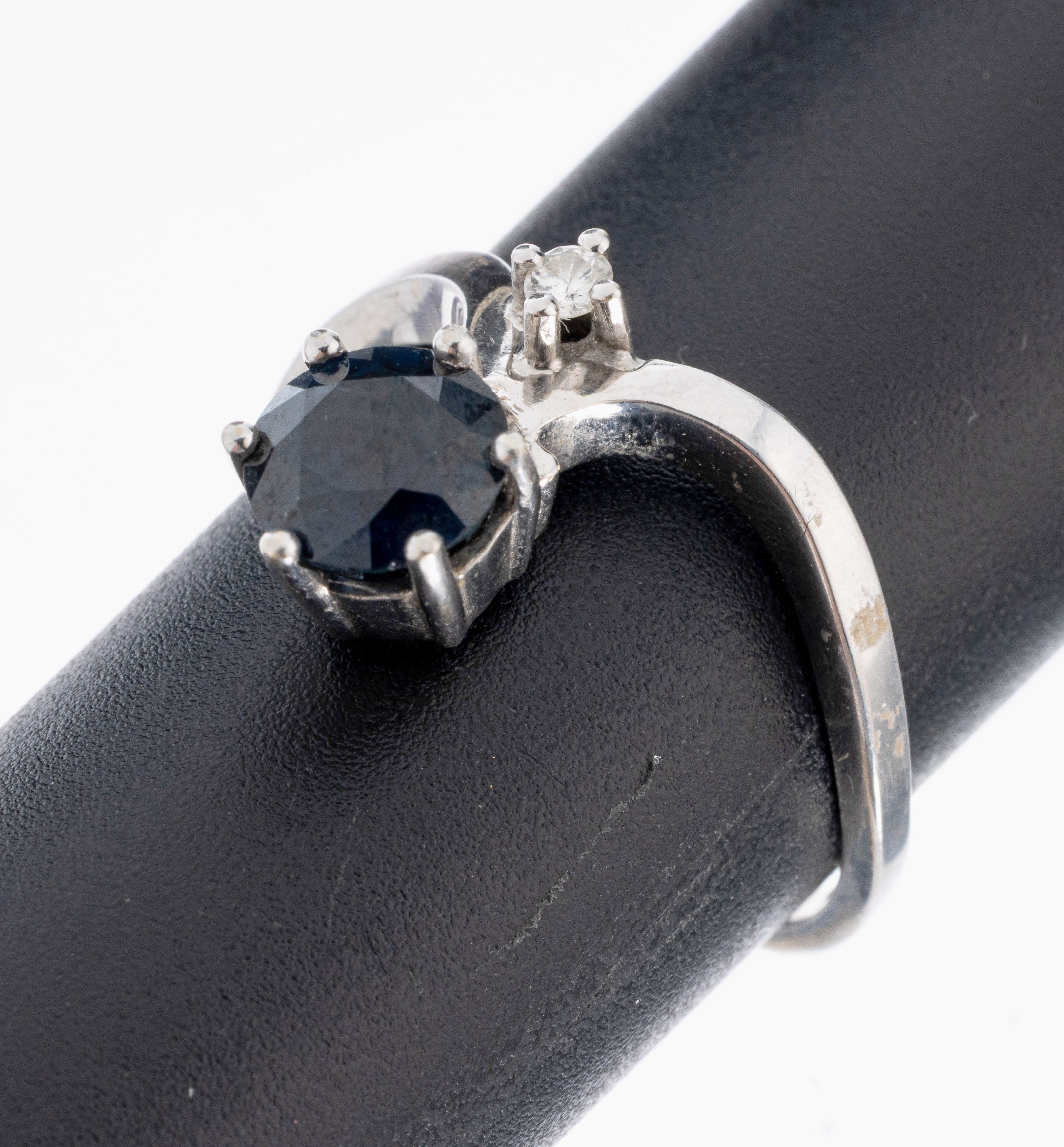 14 kt Gold Saphir-Brillant-Ring, WG 585/000, rundfacett. Saphir ca. 1.20 ct, 1 Brillant