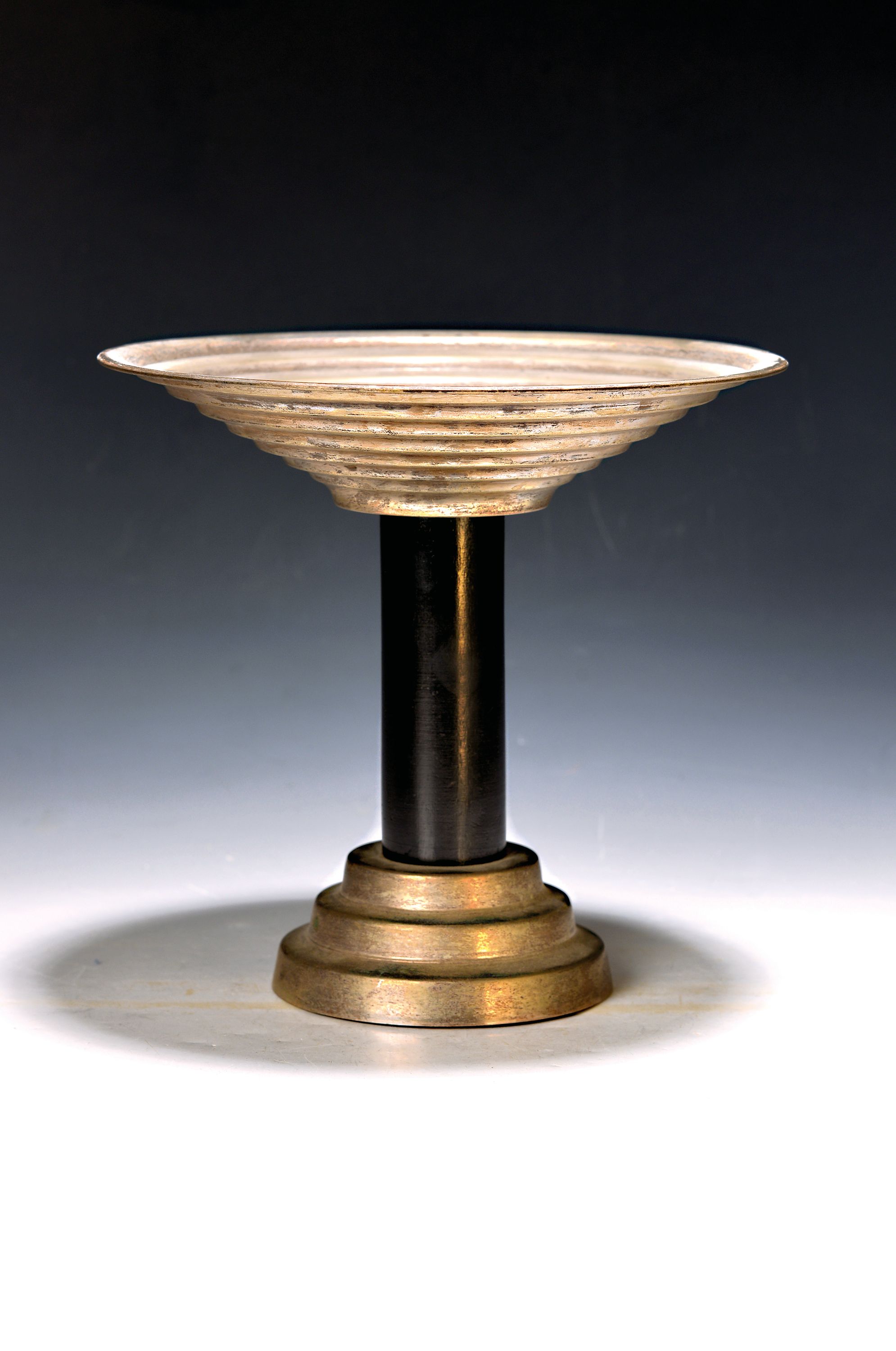Obst- / Fußschale im Stil des Art Deco, 20.Jh., Metall versilbert, geschwärzter