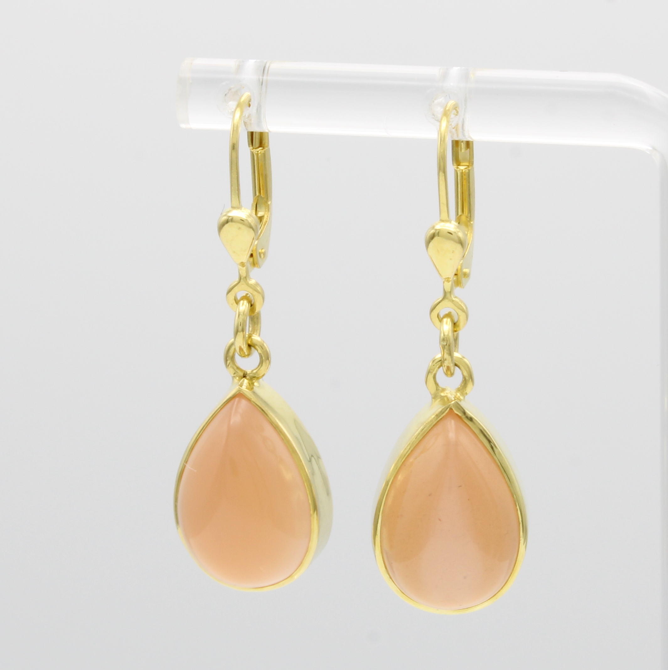 Paar Ohrgehänge mit Mondsteinen, GG 585/000, 2 tropfenförmige, orangef. Mondsteine zus. ca. 11 ct Schätzpreis: 1450, - EUR