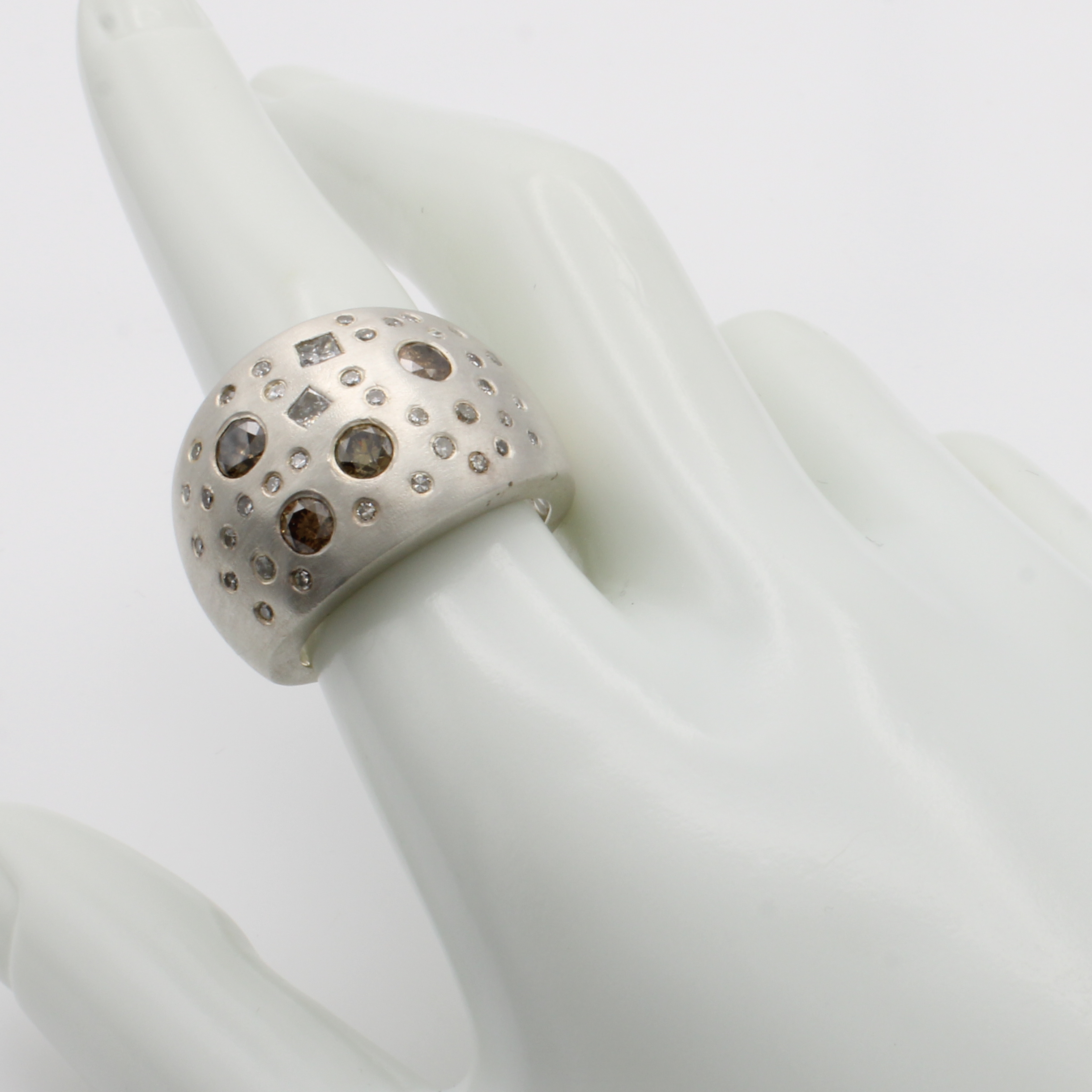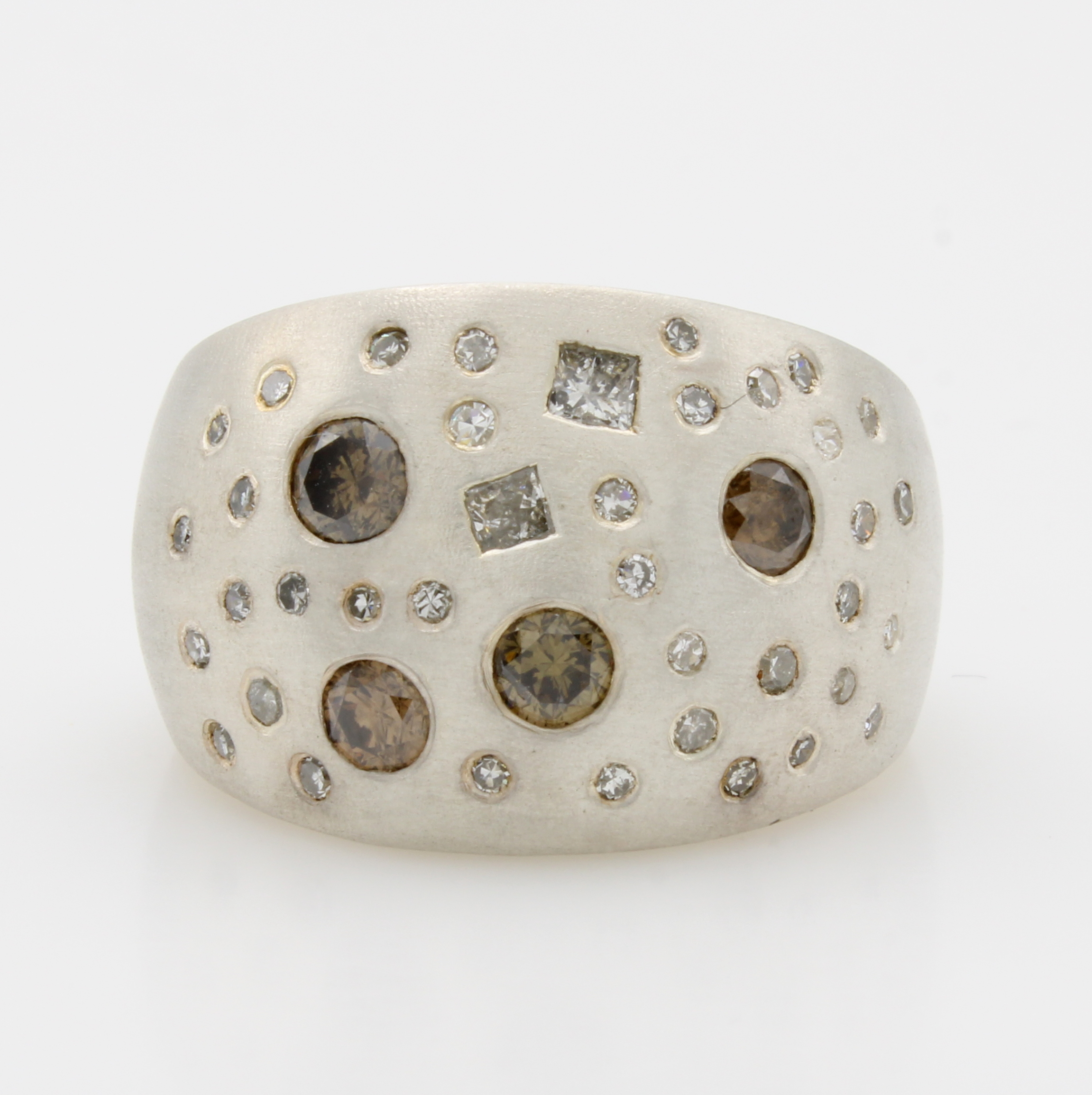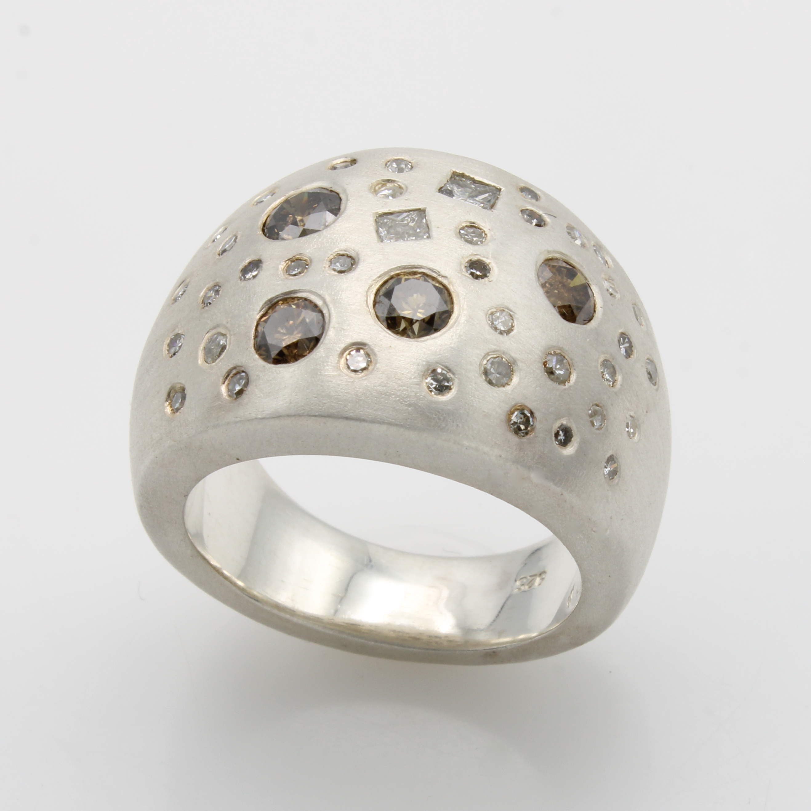 Ring mit Diamanten, 925er Silber, z.T. matt., Diam. in versch. Schliffarten zus. ca. 2 ct naturfarben/si-p, RW ca. 60 Schätzpreis: 1400, - EUR