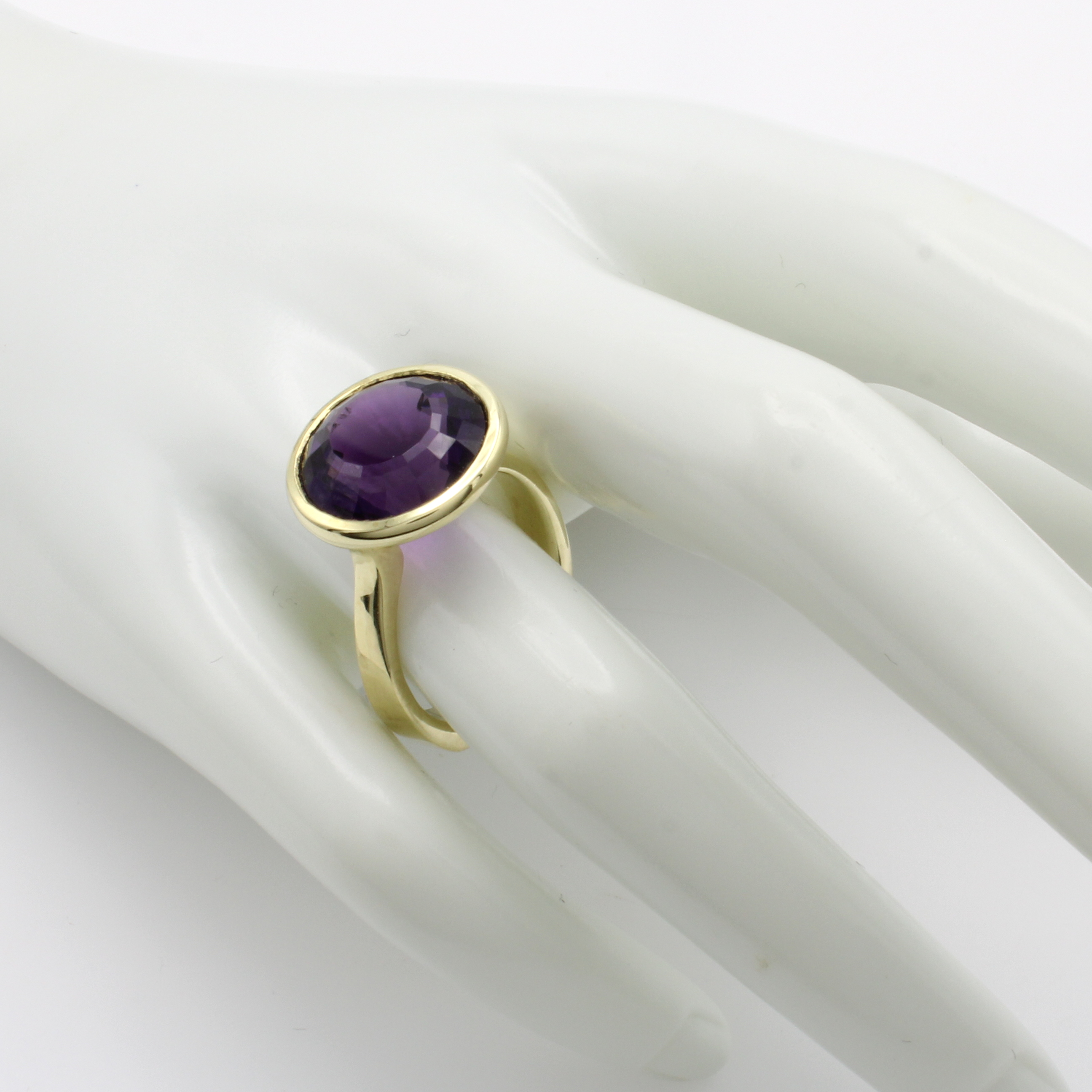 Ring mit Amethyst, GG 585/000, runder Amethyst in glatter Fassung ca. 9.9 ct, RW ca. 57 Schätzpreis: 3000, - EUR