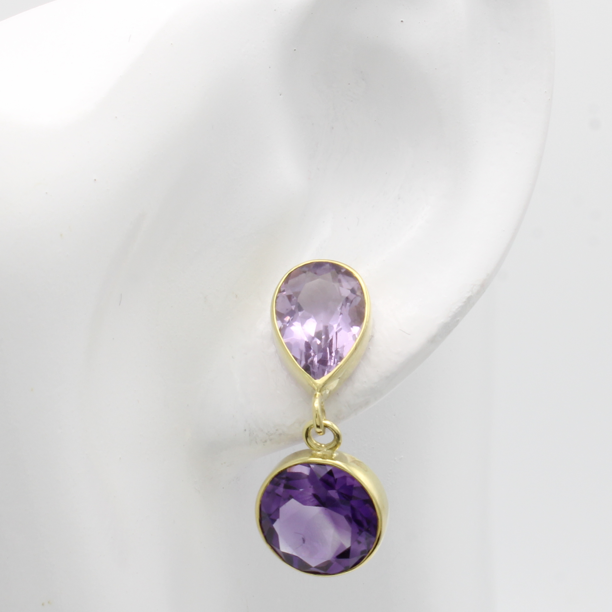 Paar Ohrgehänge mit Amethysten, GG 585/000, 2 tropfenf. u. 2 runde Amethyste zus. ca. 14.2 ct Schätzpreis: 1700, - EUR