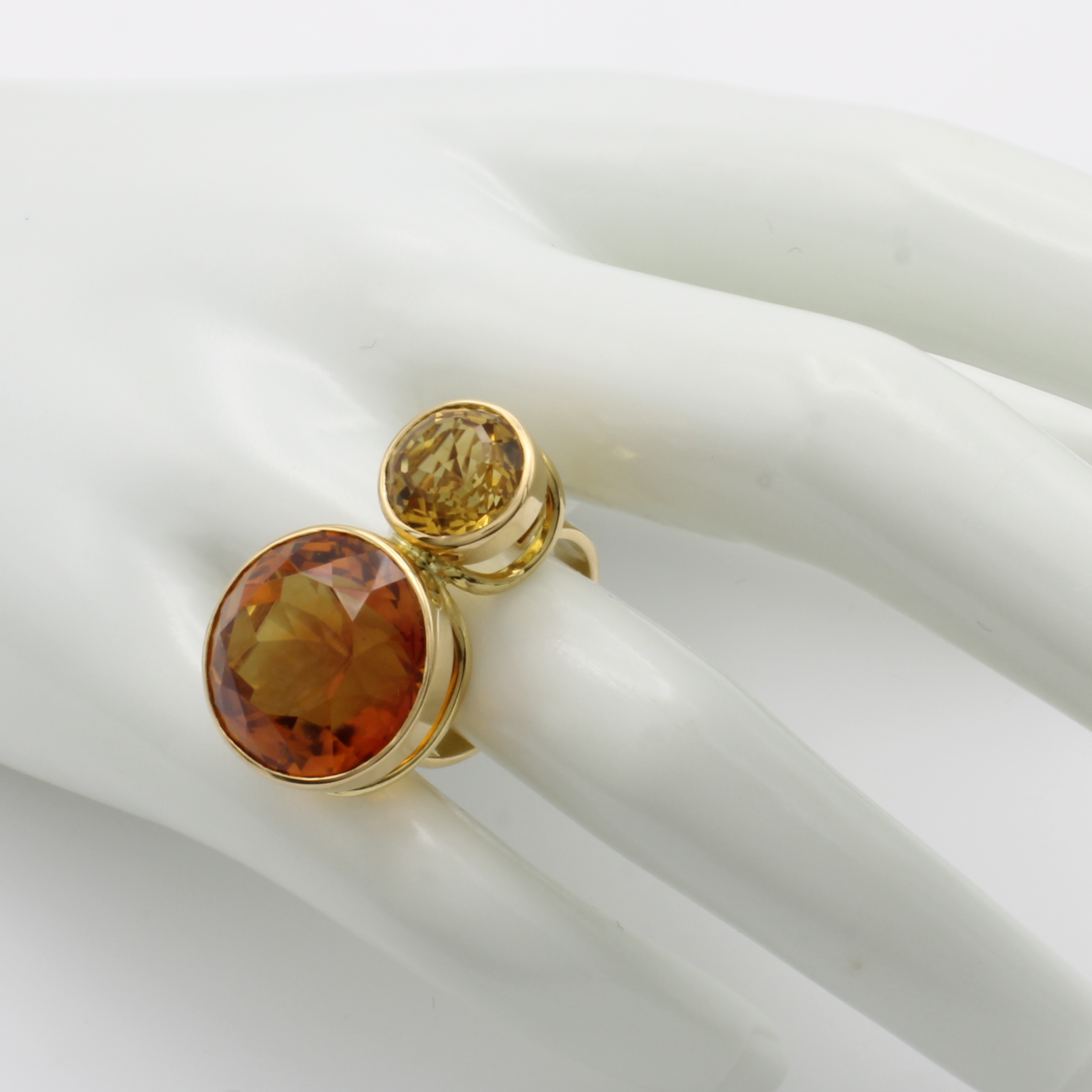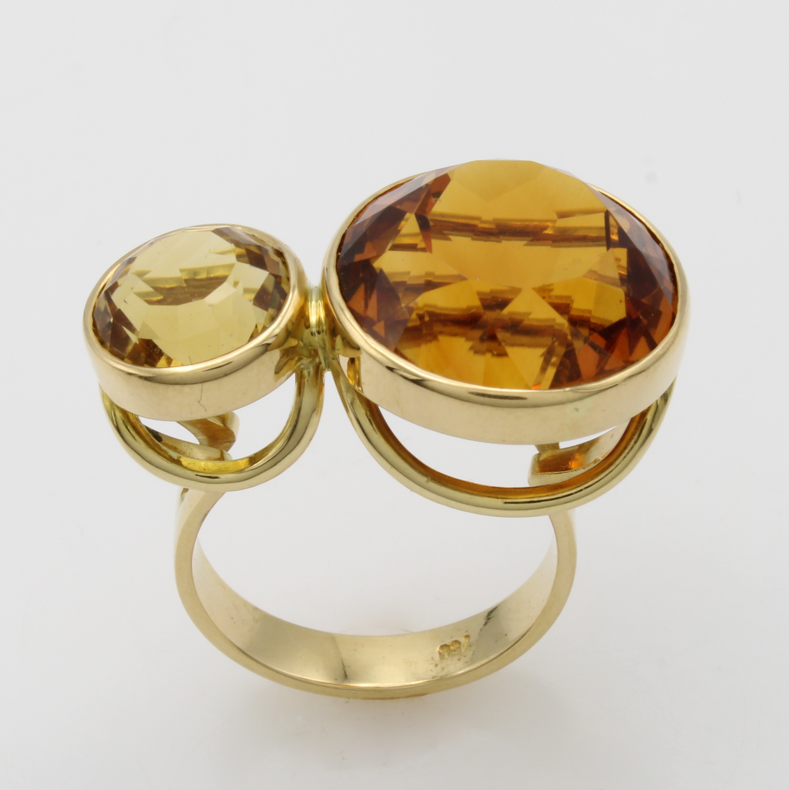 Ring mit Citrinen, GG 750/000, 2 Citrine in versch. Farbtönen zus. ca. 22 ct, RW ca. 55 Schätzpreis: 3900, - EUR