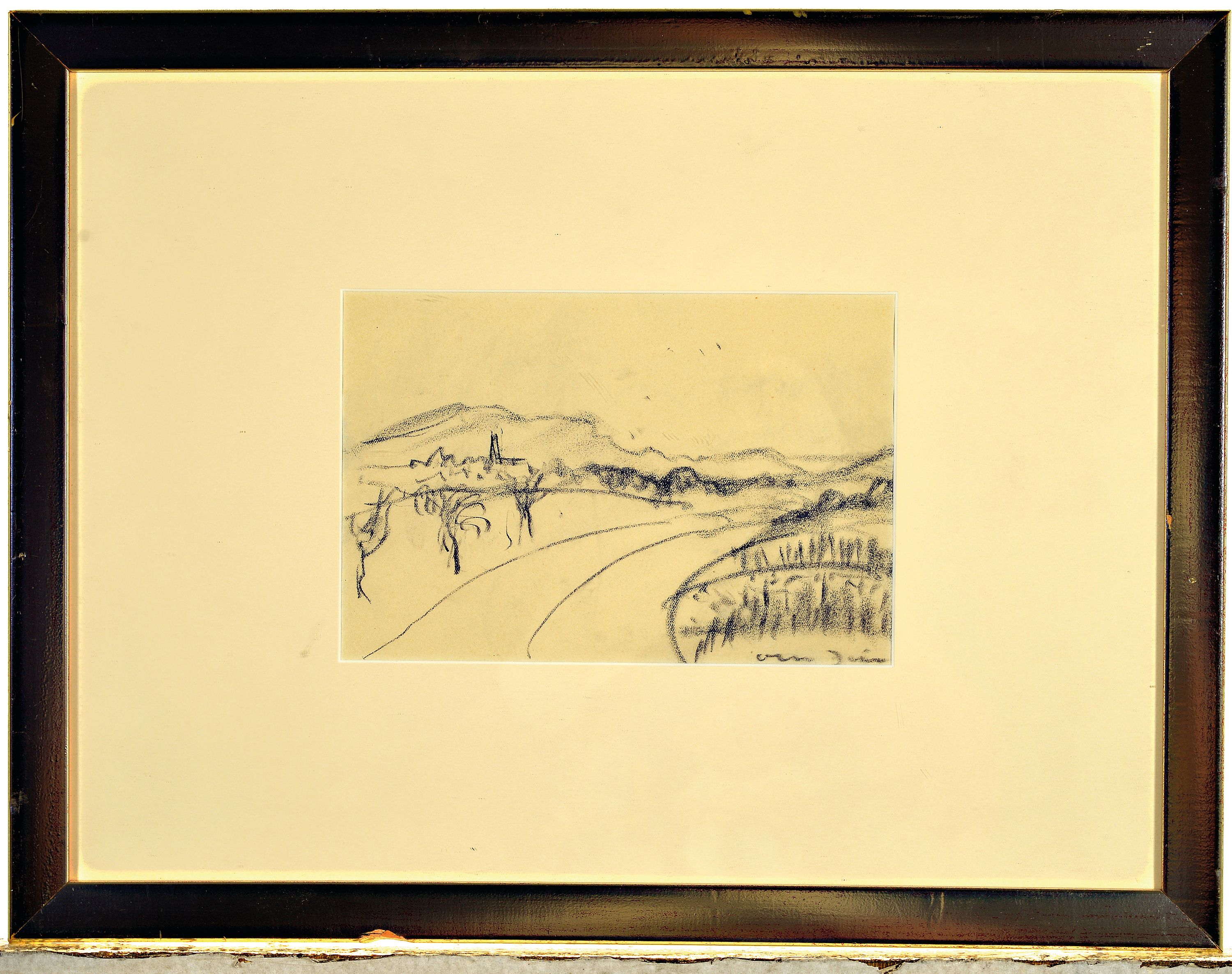 Otto Dill, 1884 Neustadt-1957 Bad Dürkheim, Landschaftsstudie, Kohlestift, Blick