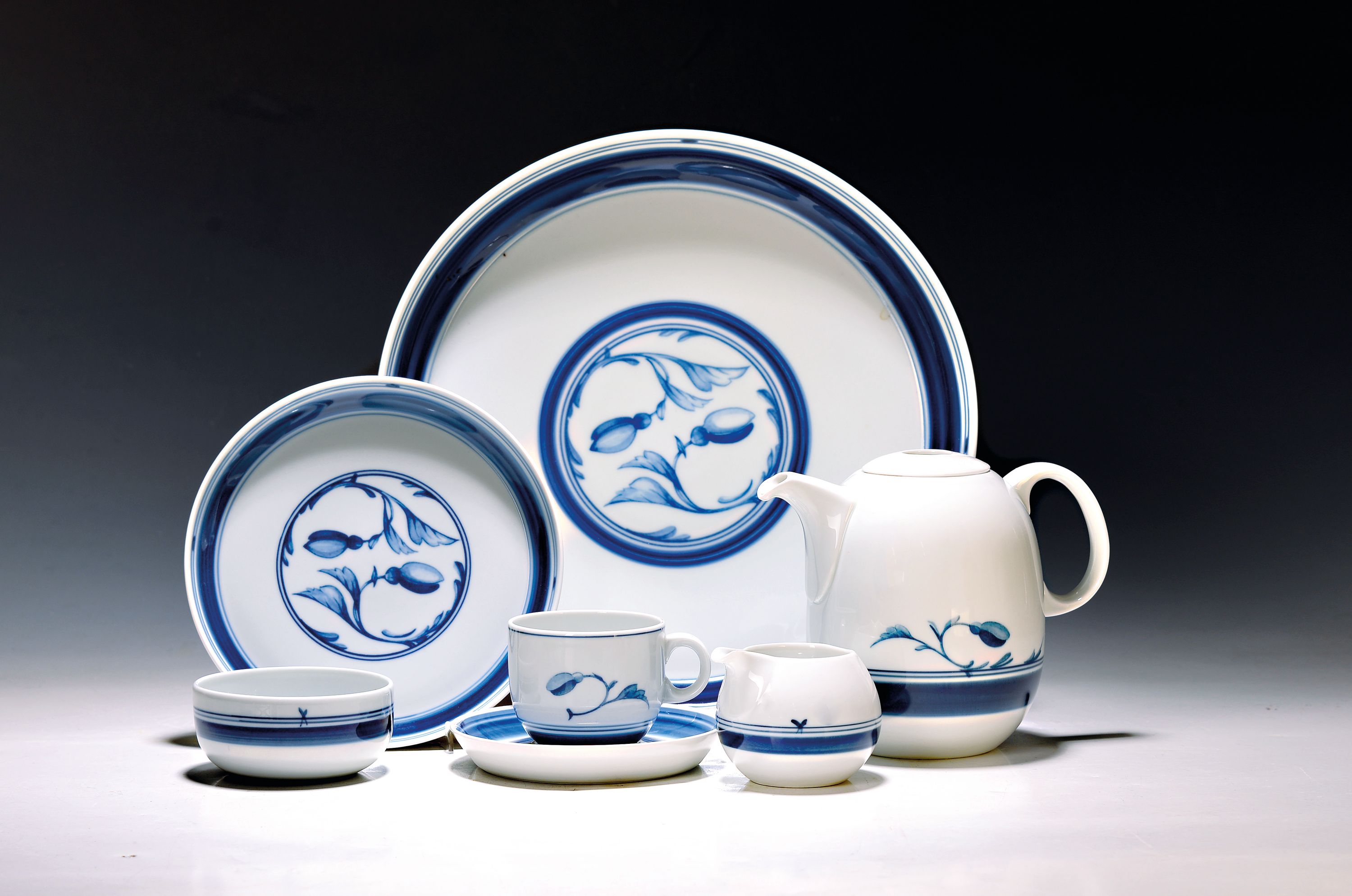 Kaffeeservice, Bing & Grondahl Kopenhagen, 20. Jh., Dekor Korinth, blauer floraler