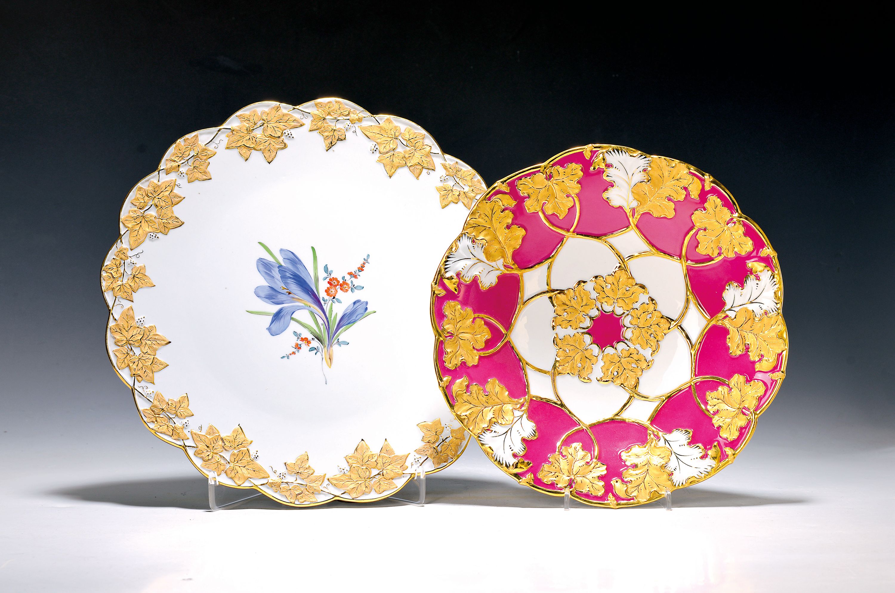 Prunkschale und Prunktortenplatte, Meissen, Knaufzeit und 20. Jh., Schale partiell