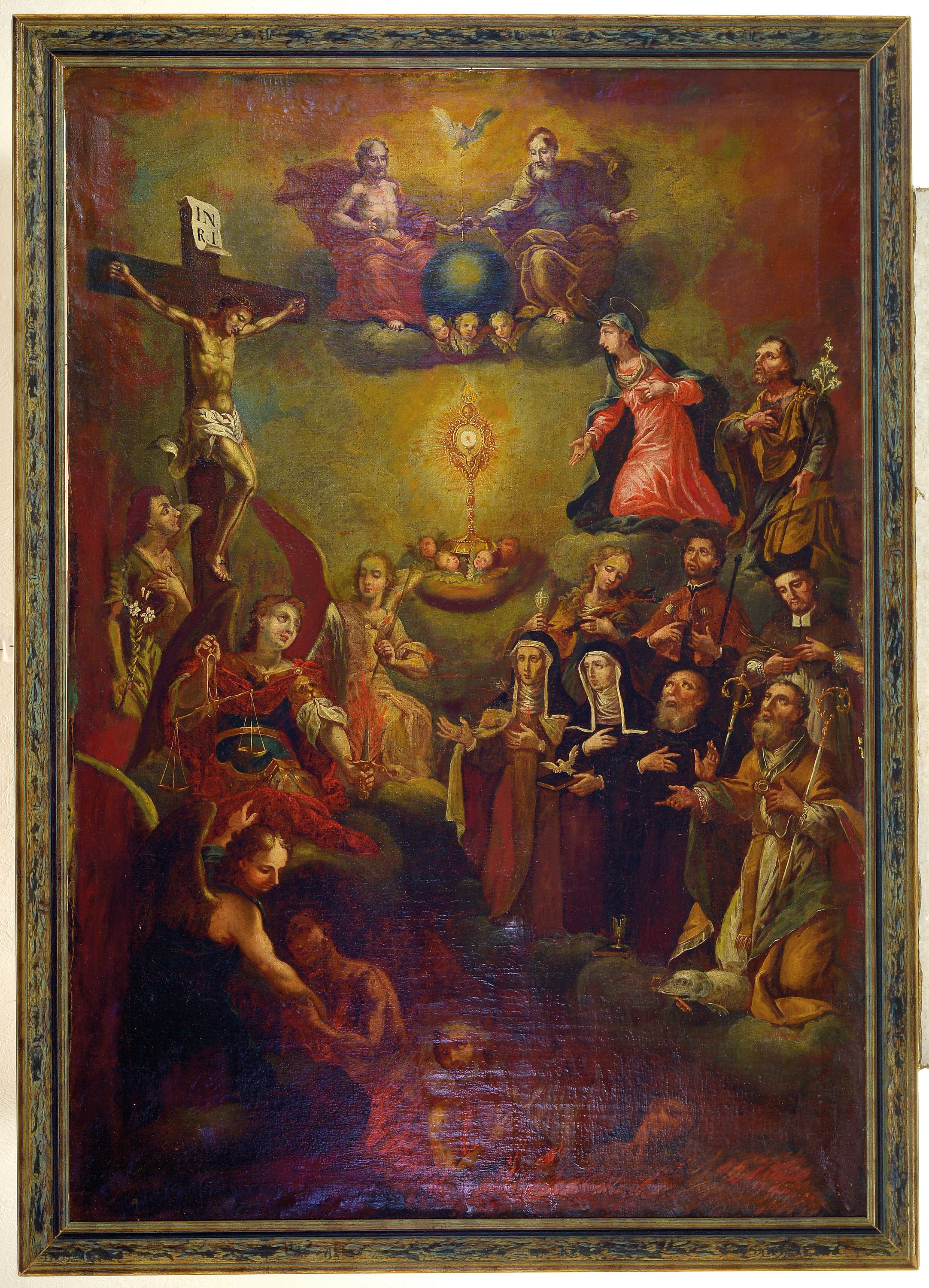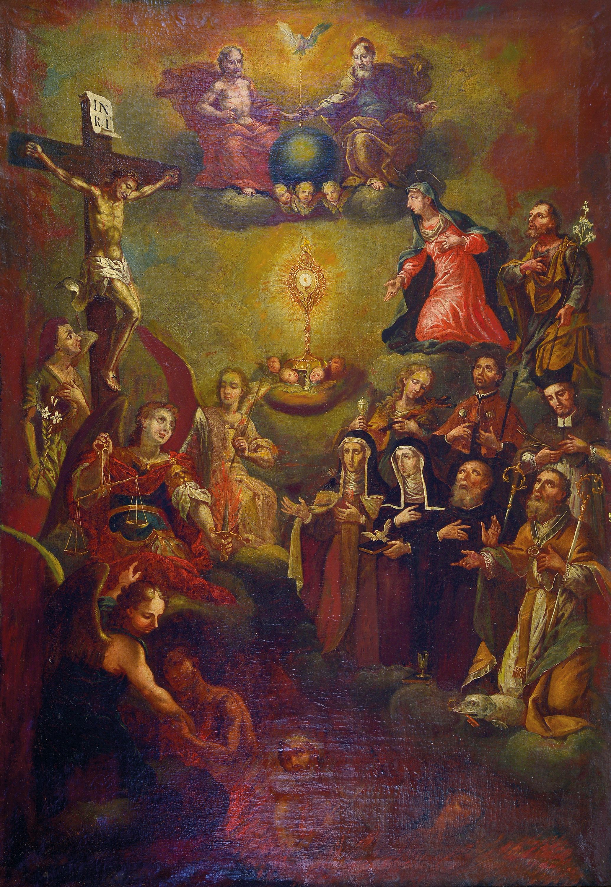 dem gekreuzigten Christus, der Eucharistie und der Dreifaltigkeit im Himmel, Öl/Lwd,