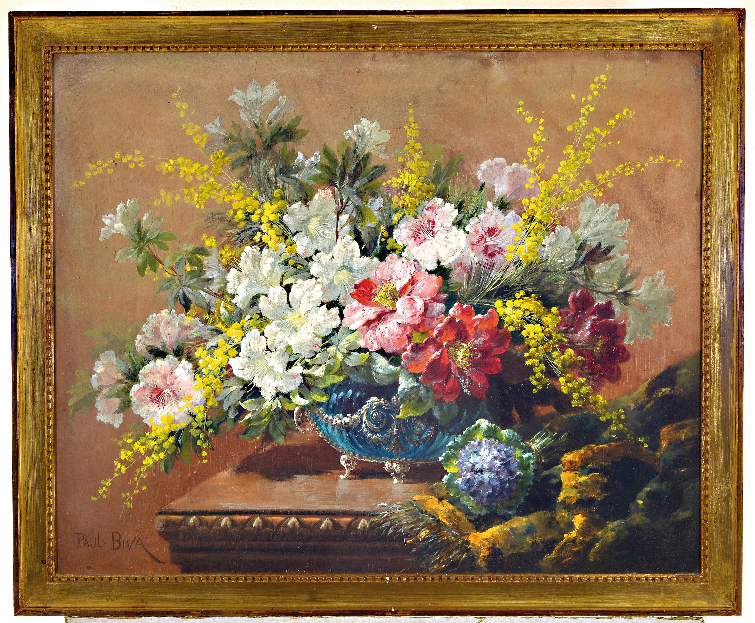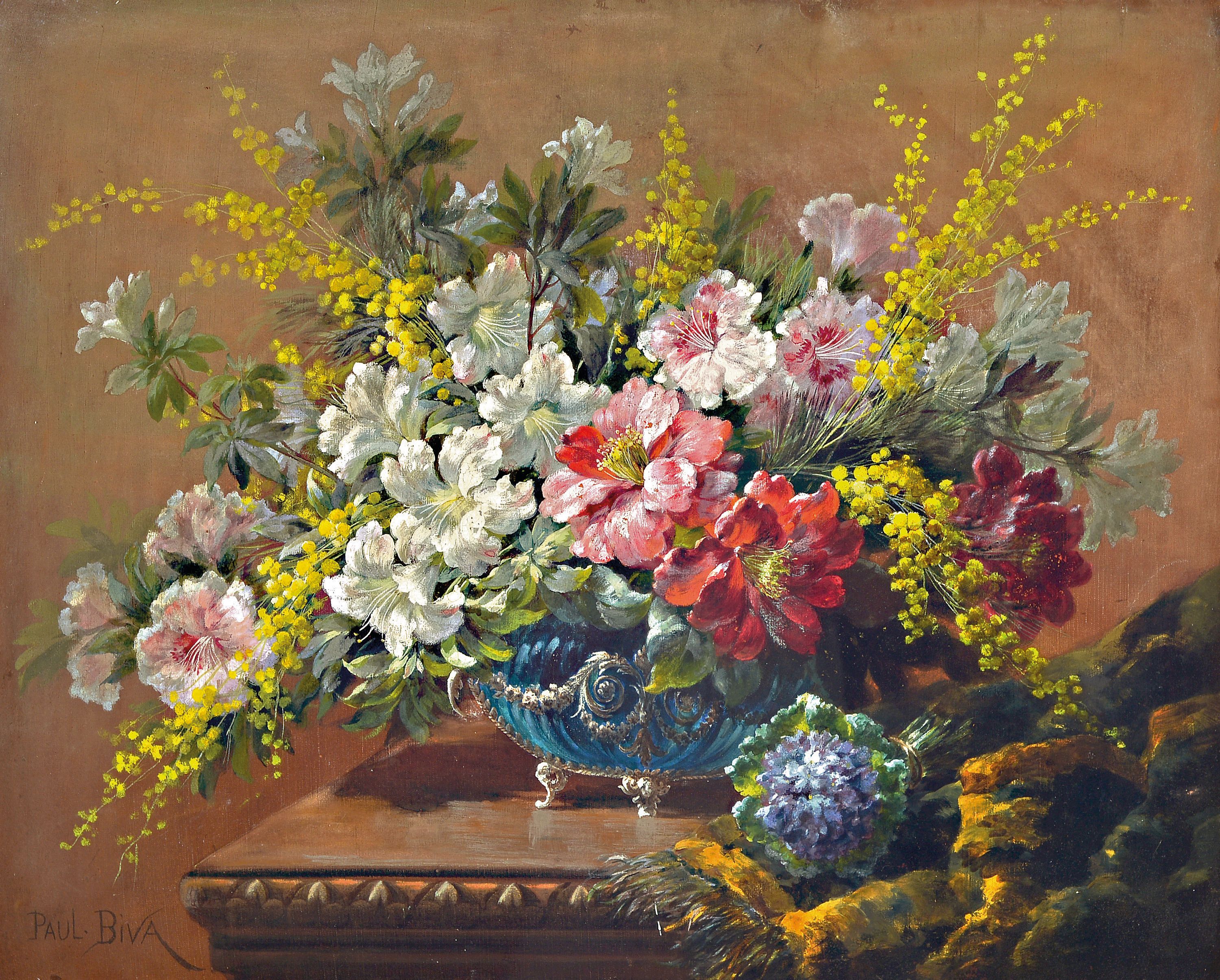 Paul Biva, 1851 Paris-1900 Avon/ Seine-et -Marne, Üppiges Blumenstillleben in Silber