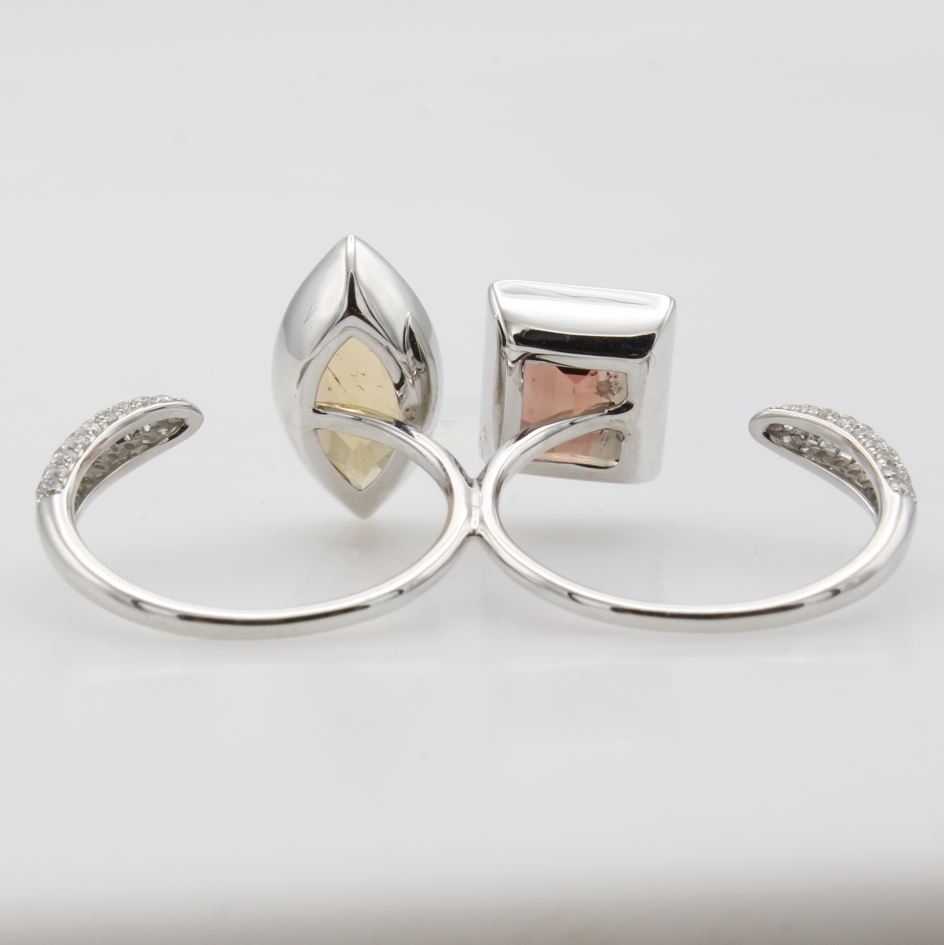 Doppelring mit Turmalinen und Brillanten, WG750/000, 86 Brill. zus. ca. 0.46 ct feines Weiß/si, 2 Turmaline zus. ca. 5.26 ct, RW ca. 54-55 Schätzpreis: 3100, - EUR