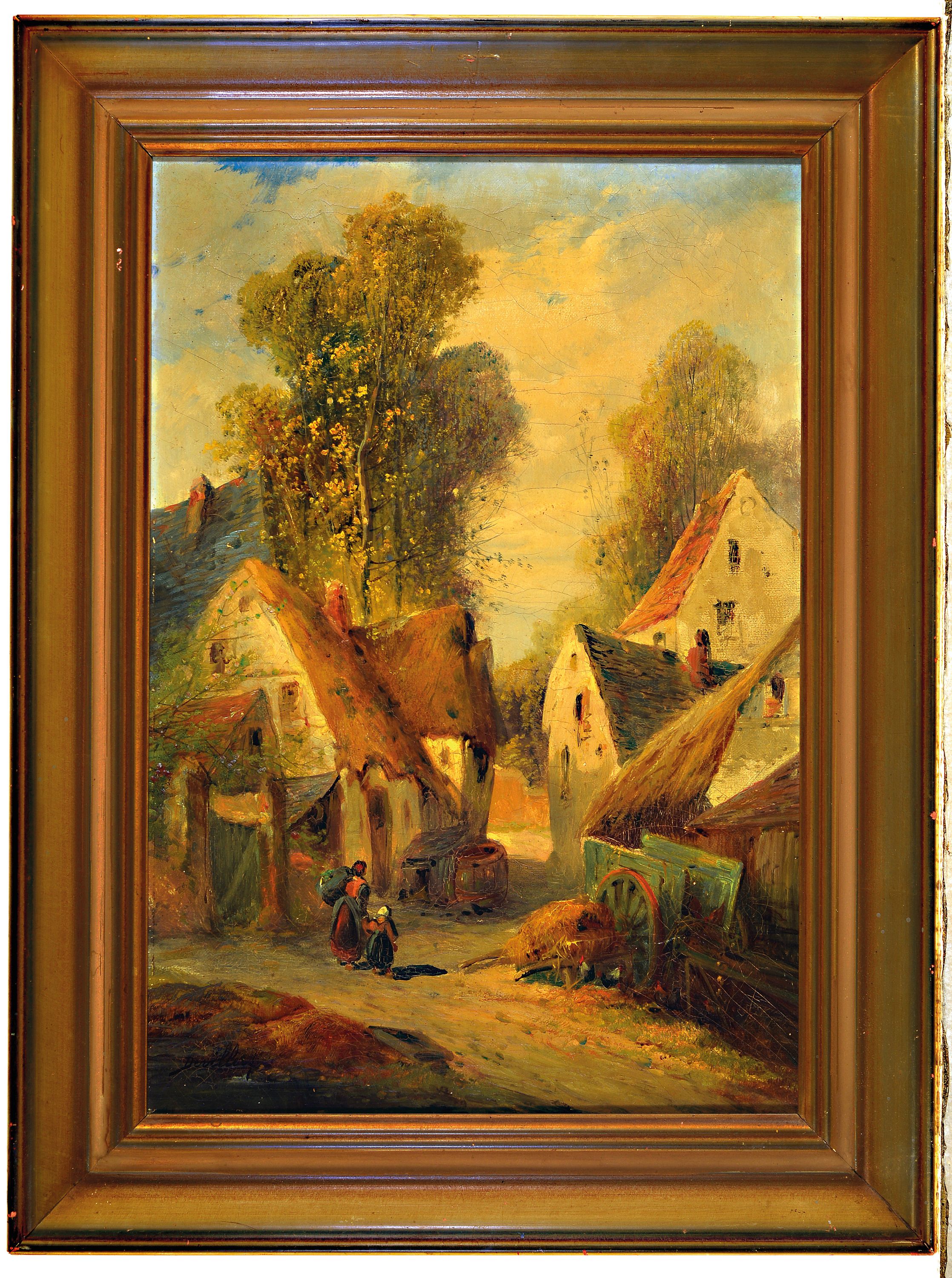 Paul Devillers, französischer Maler um 1900, Bauernpaar auf einer Dorfstraße, Öl/Lwd,