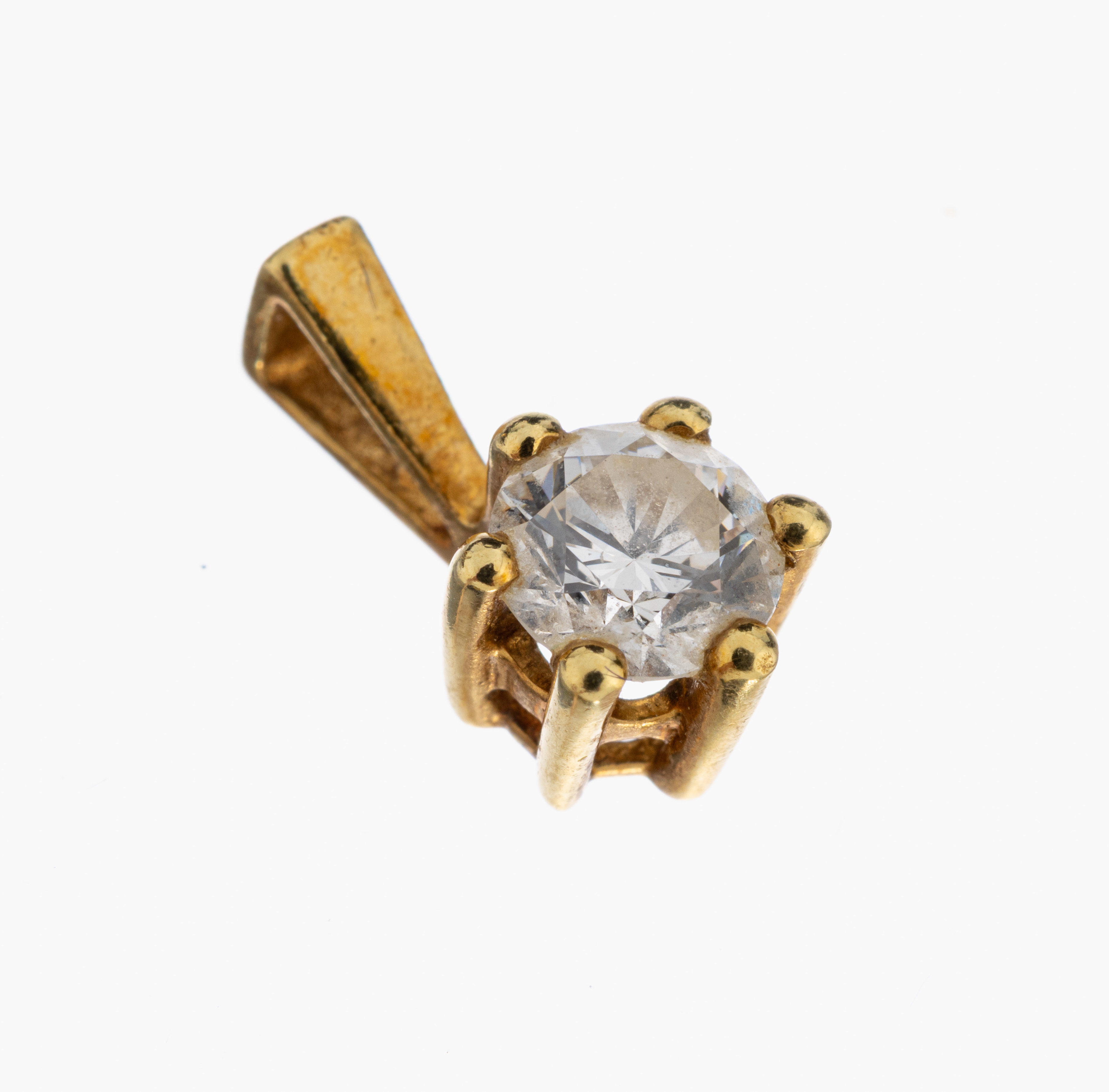 14 kt Gold Brillant-Anhänger, GG 585/000, Brillant ca. 0.40 ct Weiß/si, L. ca.