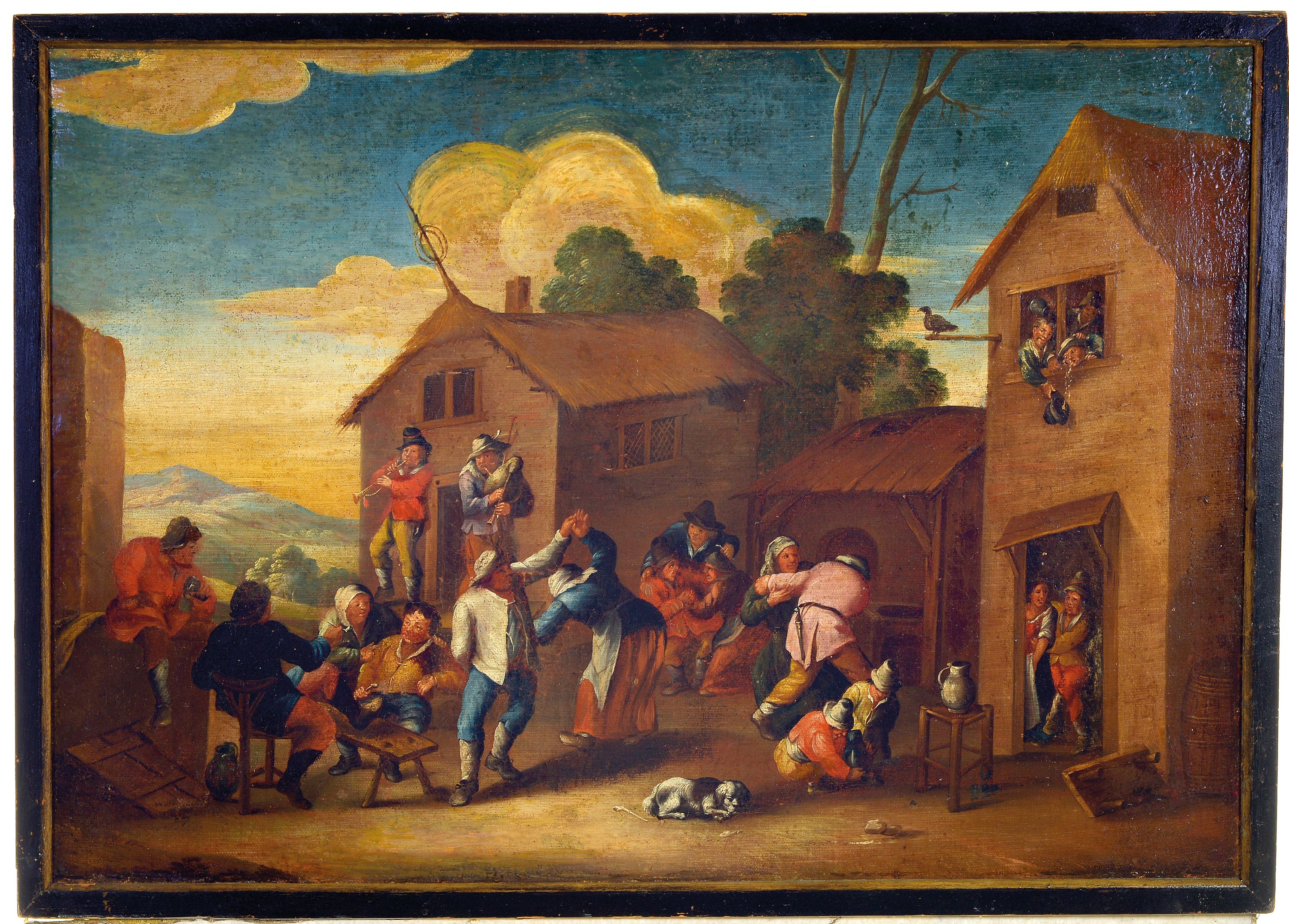 Unbekannter Künstler, Niederlande, um 1830-40, vielfigurige Bauernhochzeit mit tanzendem