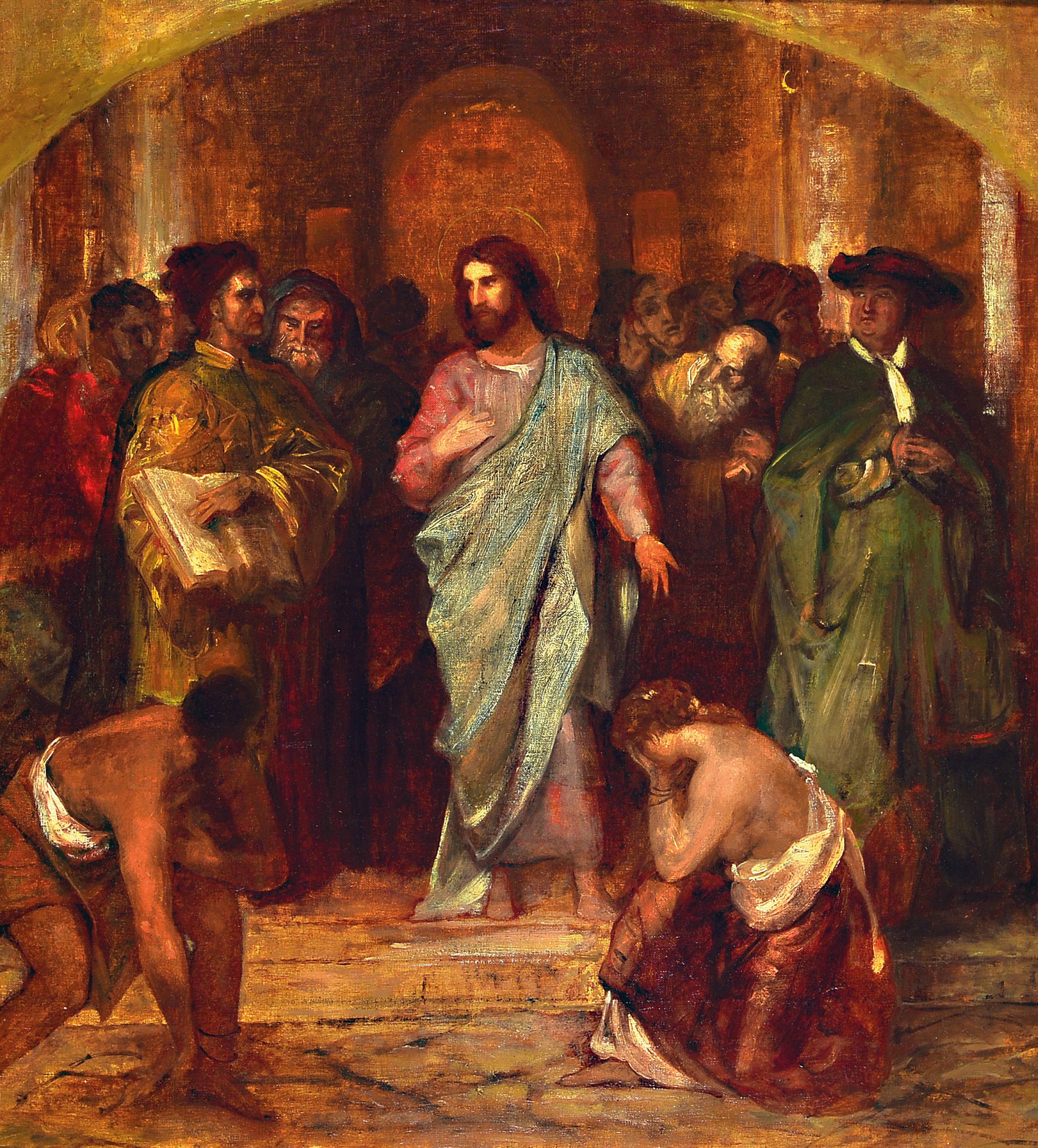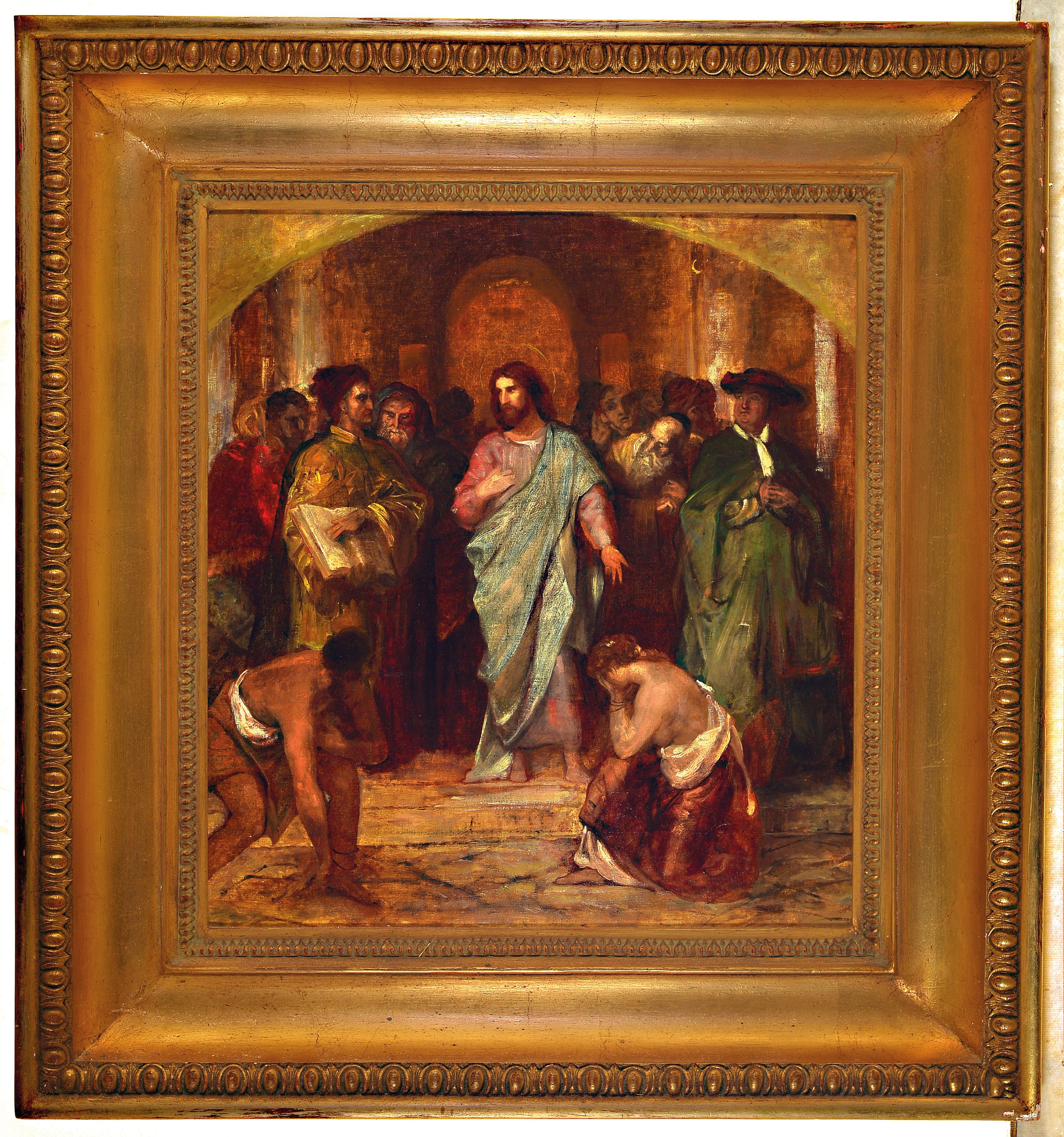 Unbekannter Künstler, Nazarener, 2. Hälfte 19. Jh., Jesus im Tempel, vielfigurige