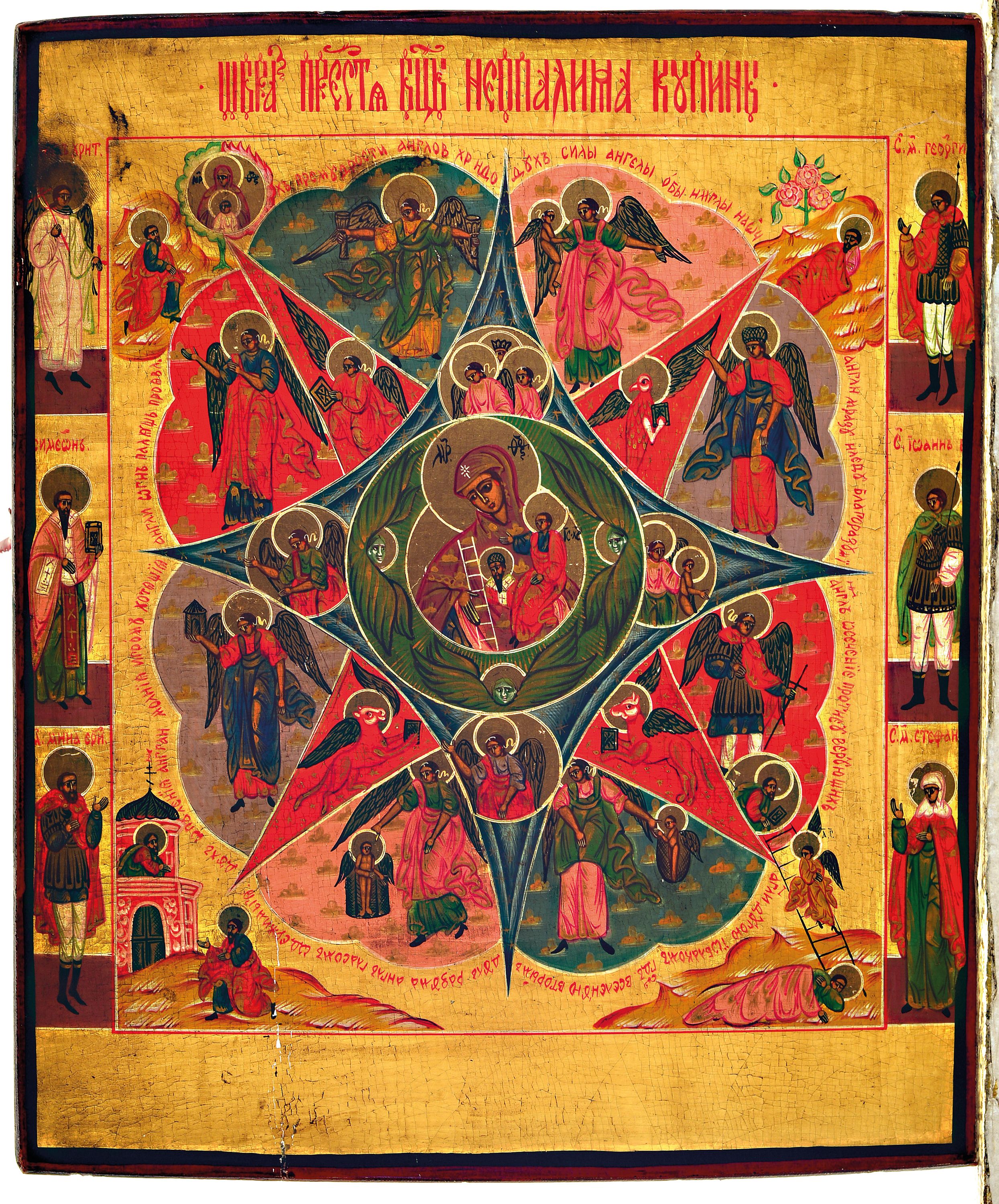 Ikone, Russland, um 1870, Gottesmutter vom unverbrennbaren Dornbusch, Tempera auf
