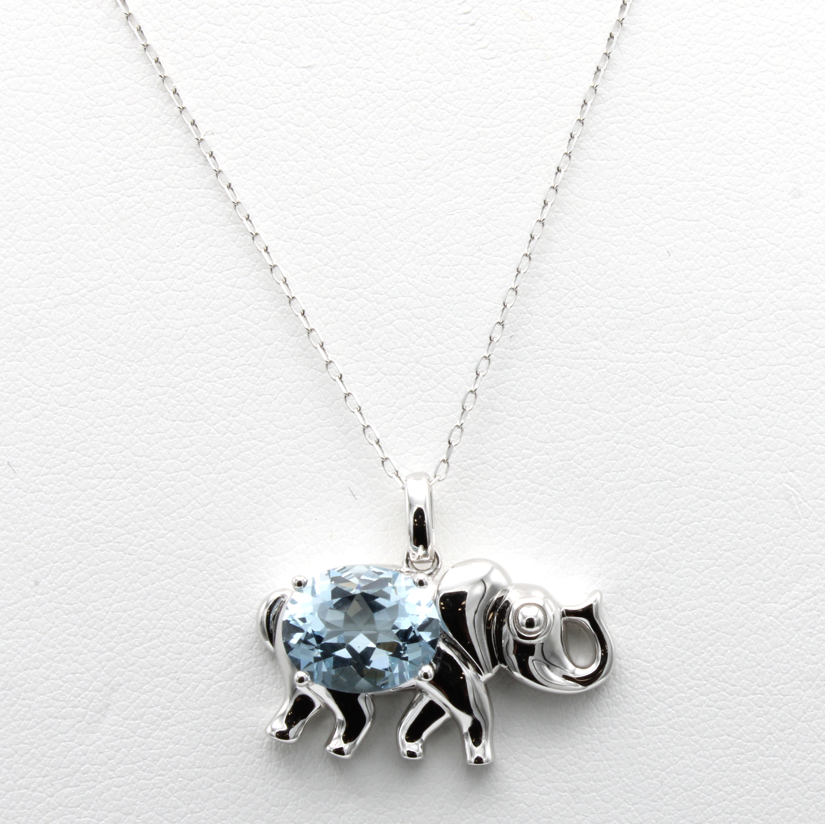 Anhänger "Elefant" mit Aquamarin an Kette, WG 585/000, fac. Aquamarin ca. 2.91 ct, in L. ca. 42 u. 45 cm tragbar Schätzpreis: 1900, - EUR