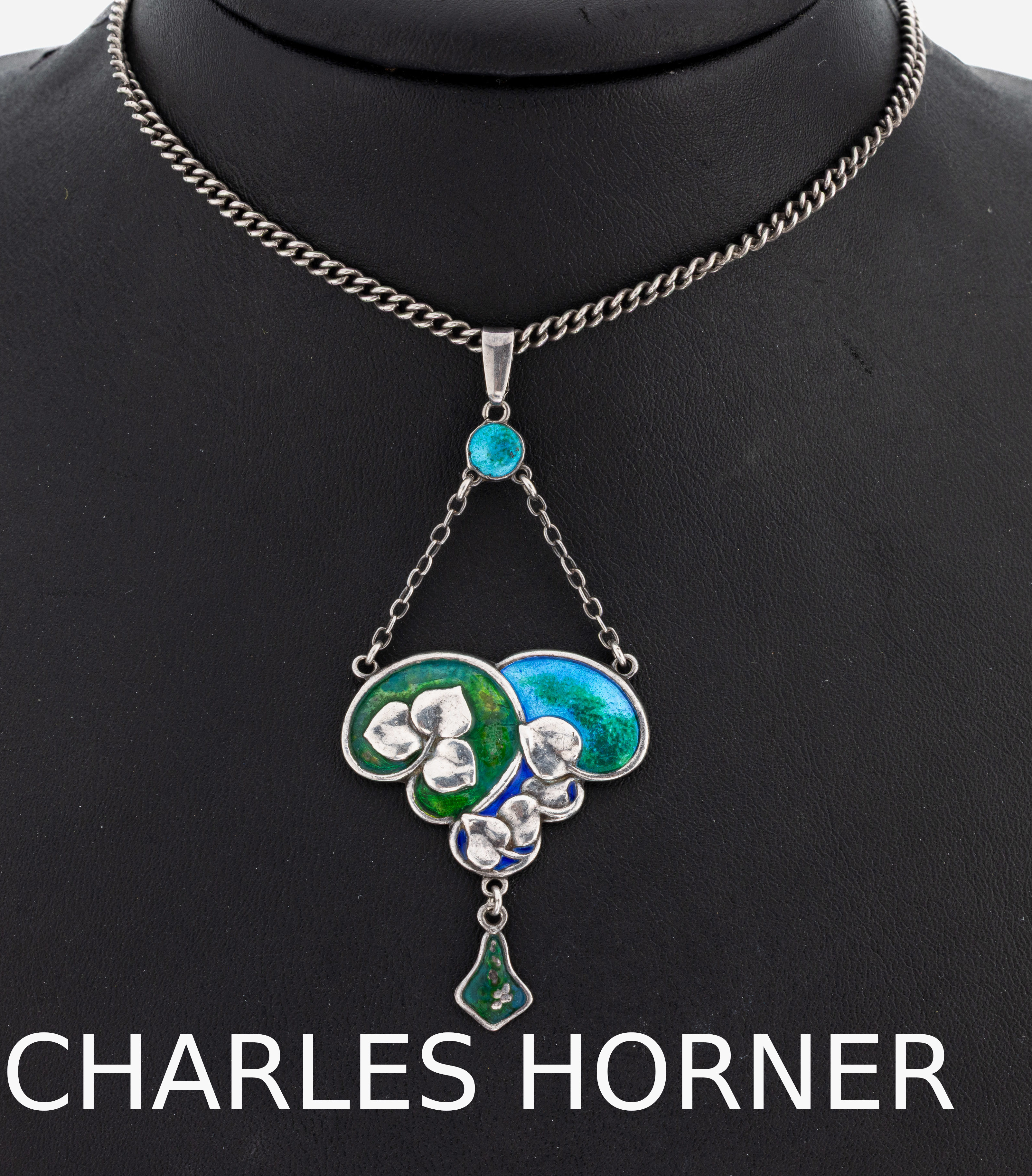 Anhänger, CHARLES HORNER, England 1909, 925er Silber, reiner Jugendstil, blau-grün