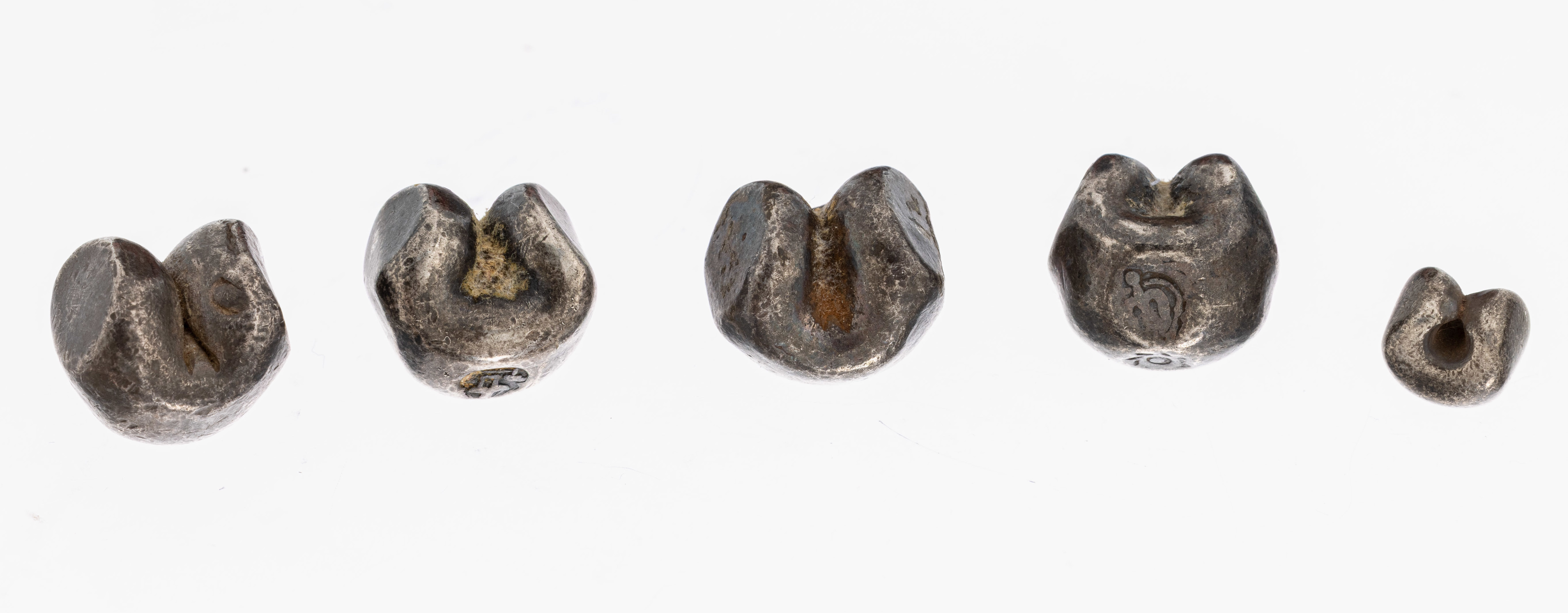 Thailändisches Kugelgeld, Pot Duang, Siam Mitte 19.Jh., es wurde ein genau ausgewogener