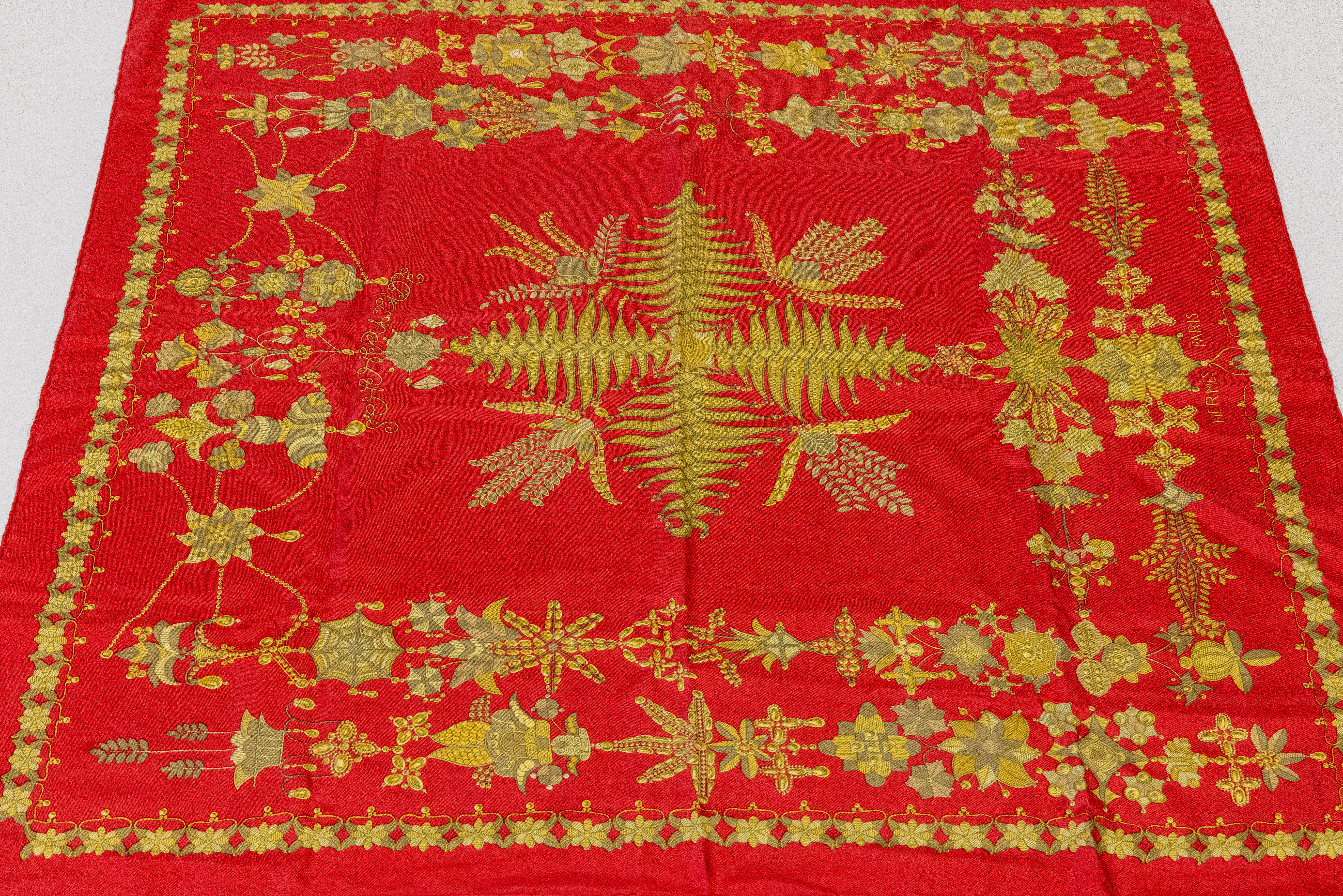HERMES Carree, Henri P´Origny, 1966, Sherazade, rotgrundig mit goldfarb. Emblemen,