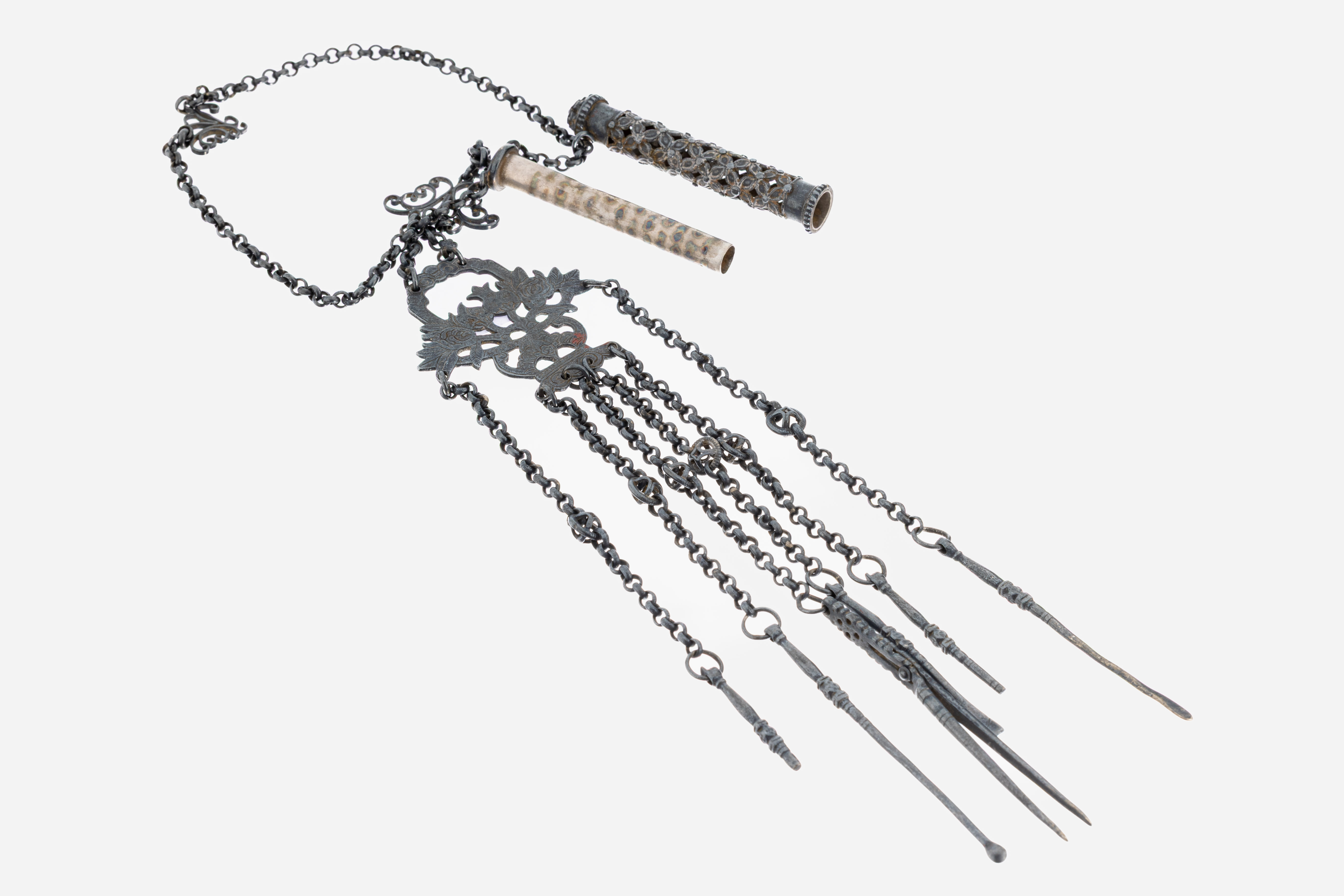 Pflegewerkzeugen, Oberteil mit Duftbehälter (?), Kettengliederverbindungen, L. ca