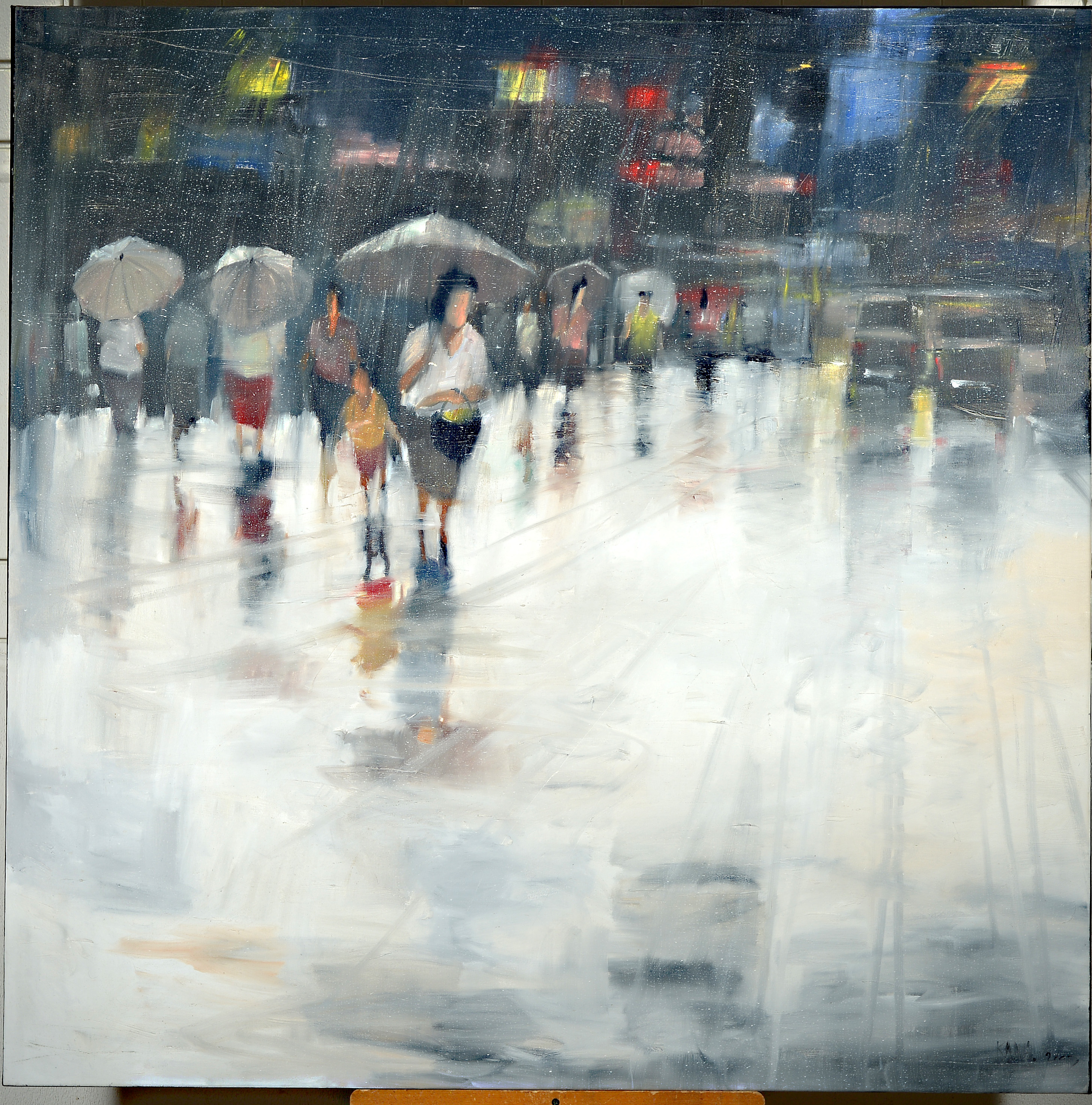 bei Regen, Öl/Lwd, rechts unten sign., ca. 130x 130cm