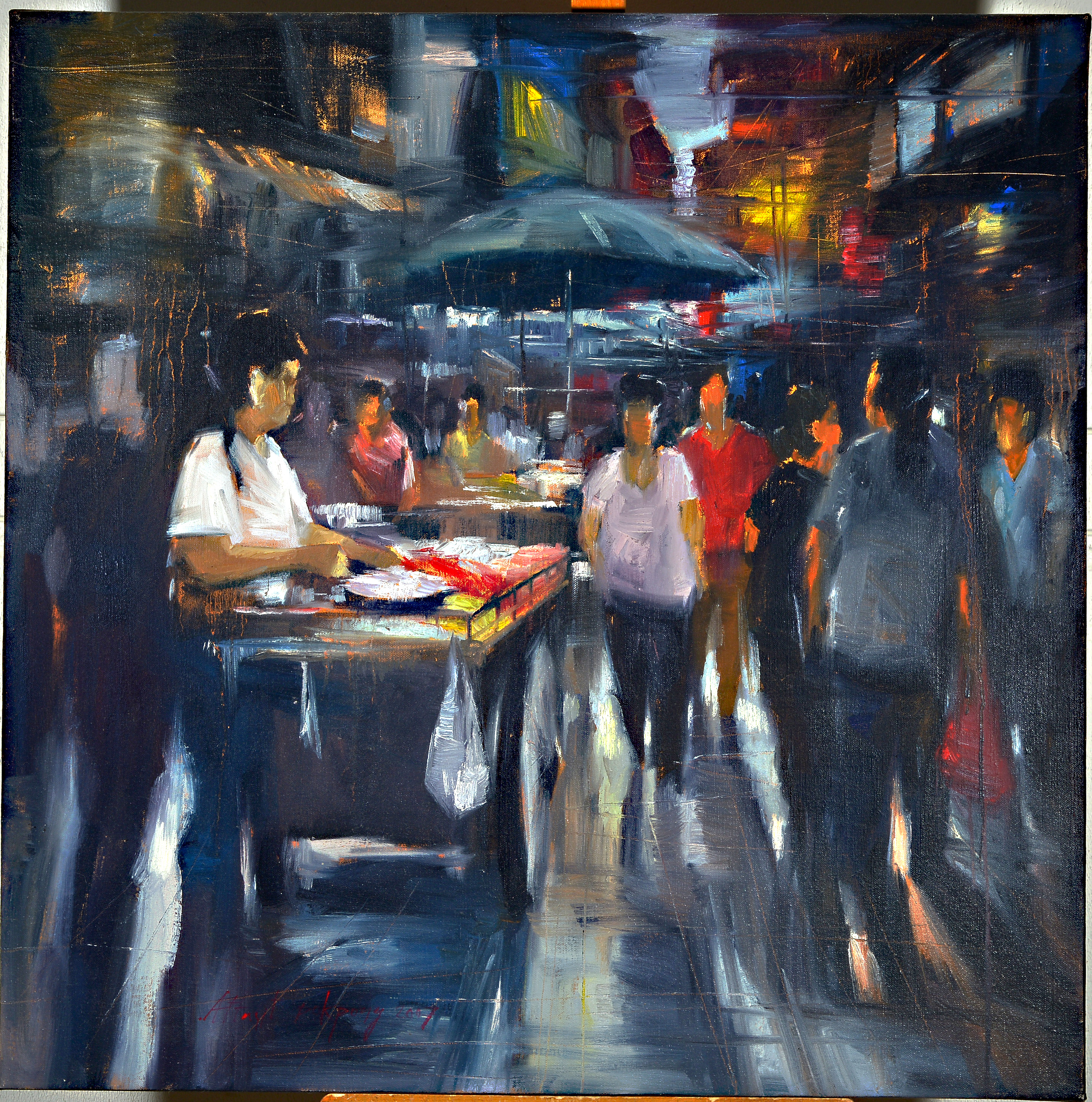 Attasit Pokpong, geb. 1977, zeitgen. Künstler aus Bangkok, vielfigurige Szene auf