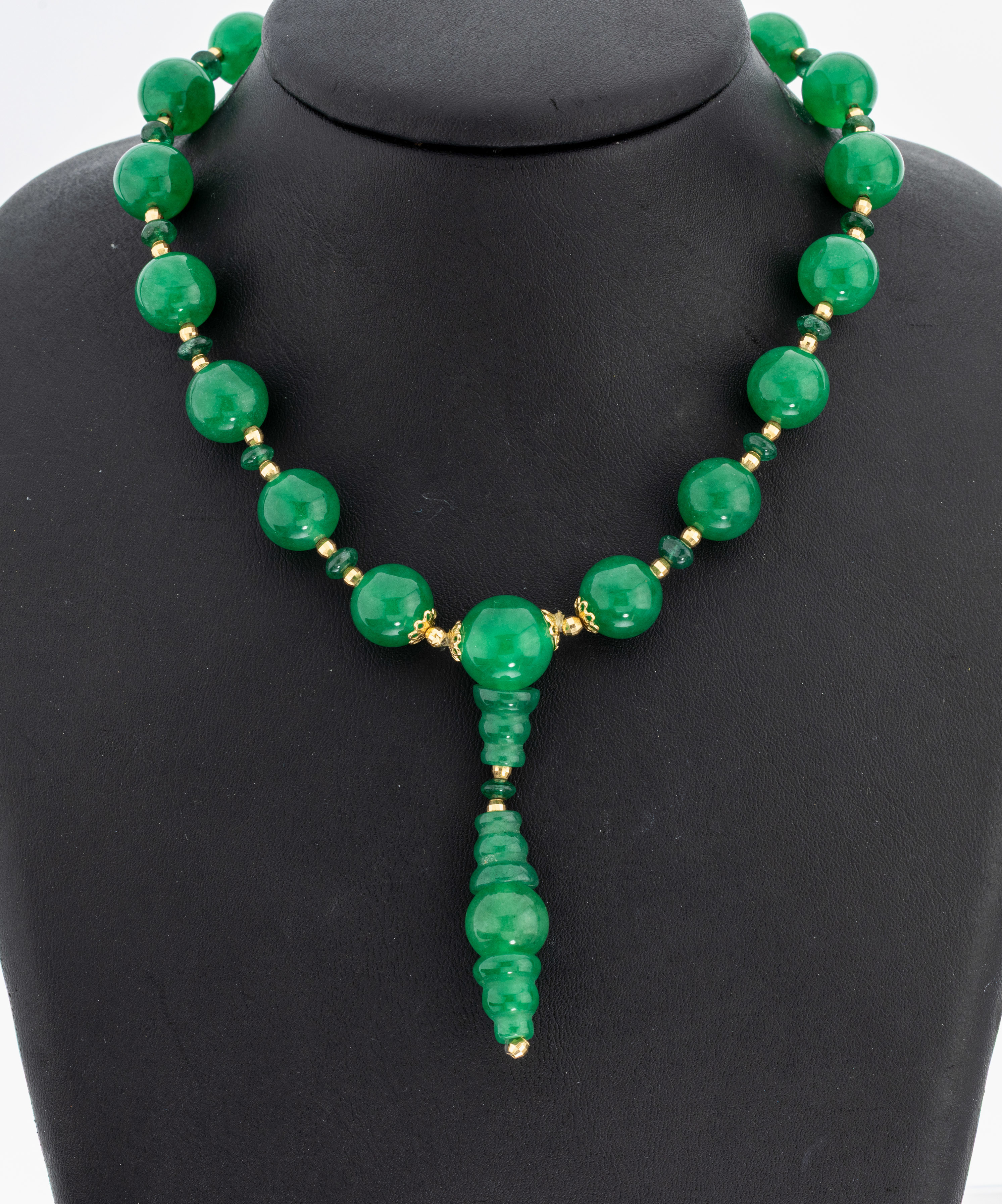 Achat-Collier mit 18 kt Gold Schließe, GG 750/000, grüne Achatkugeln, gefärbt,