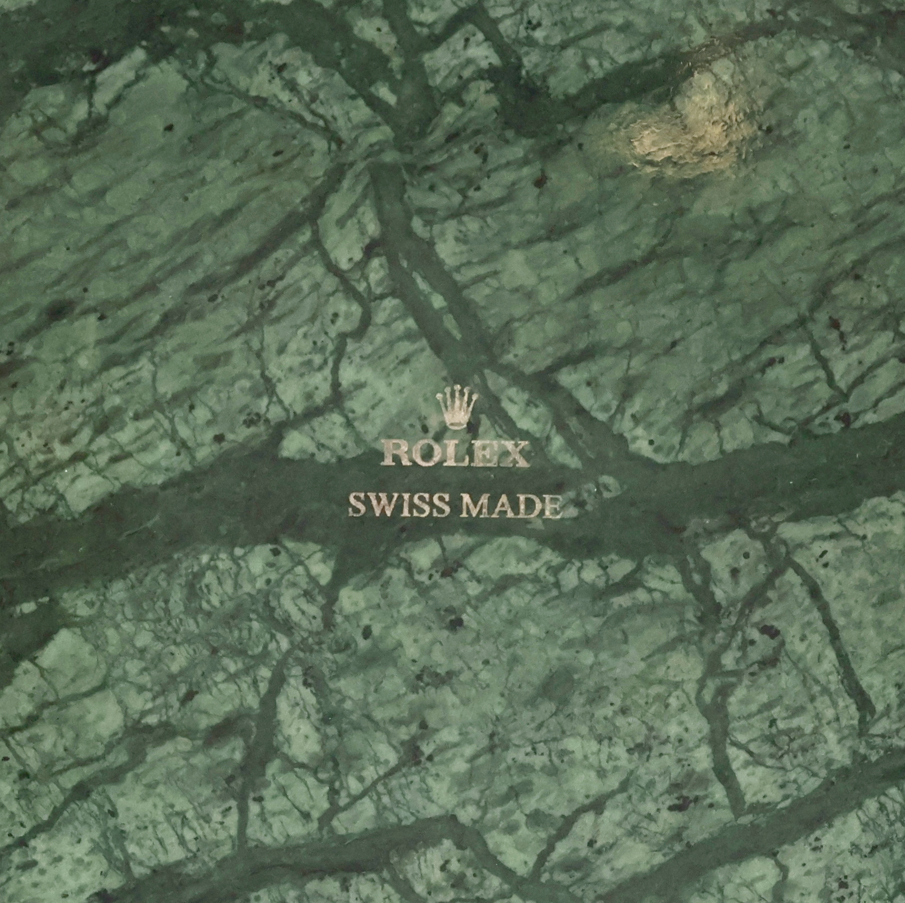 ROLEX Aschenbecher aus grünem Marmor, Schweiz, M. ca. 30 x 16 x 16 cm, Gew. ca. 1390g, in gebrauchsfähigem Zustand
