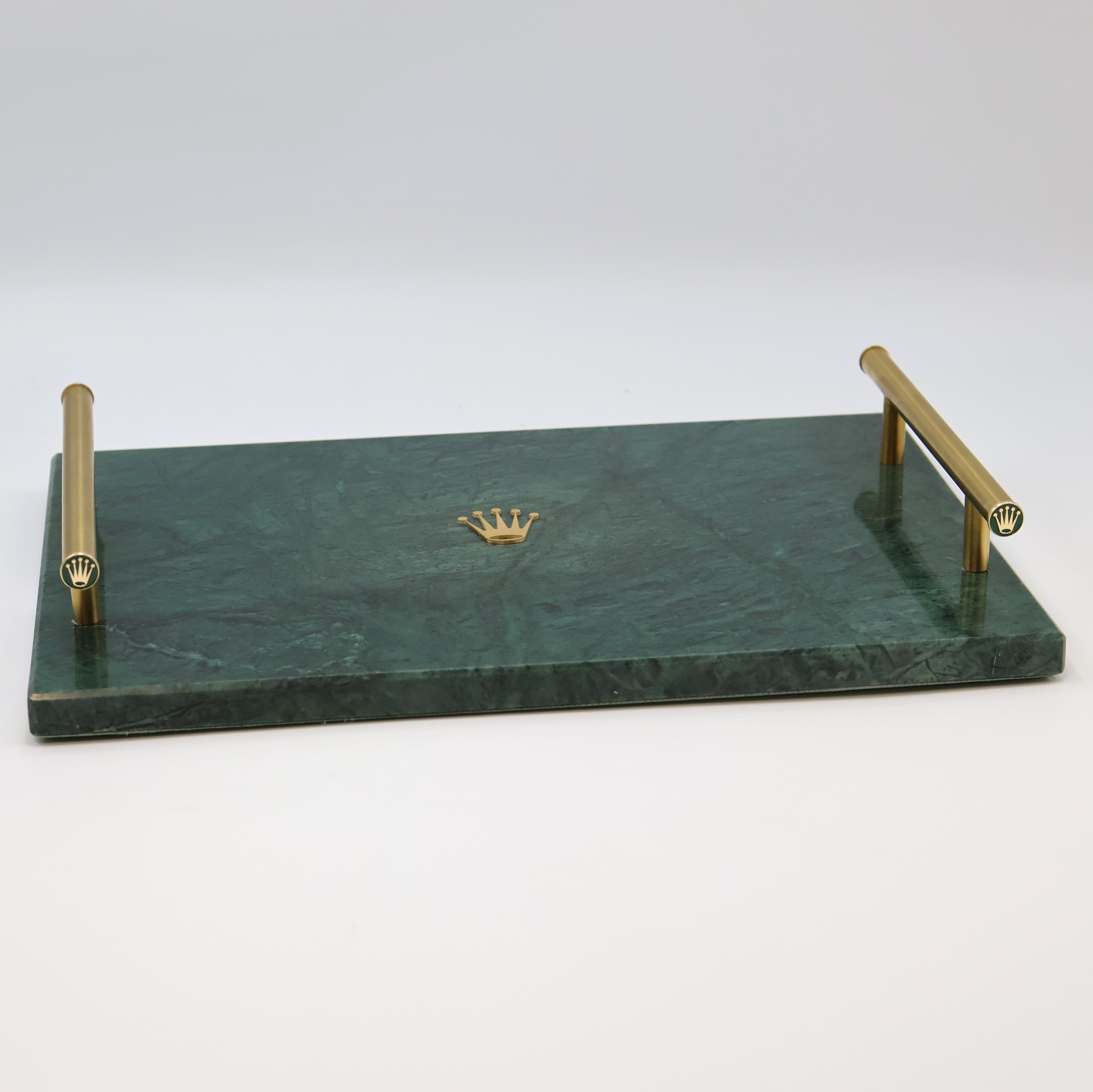 ROLEX Display aus grünem Marmor, Schweiz, M. ca. 5 x 30 x 20 cm, Gew. ca. 2350g, in gebrauchsfähigem Zustand