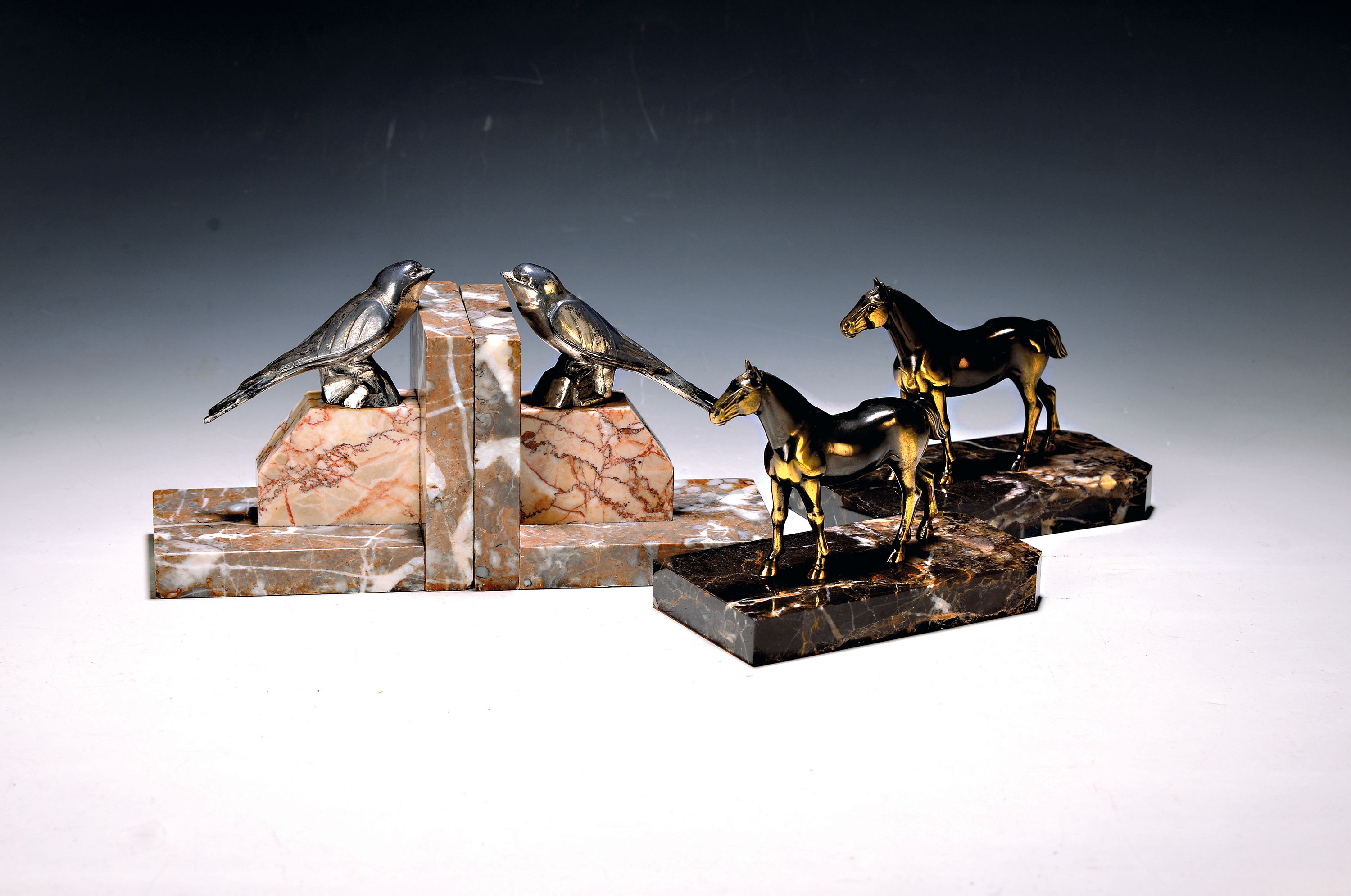 mit versilberten Vögeln, ein Paar mit Pferden, berieben bzw. Alterssp., H. 14/11