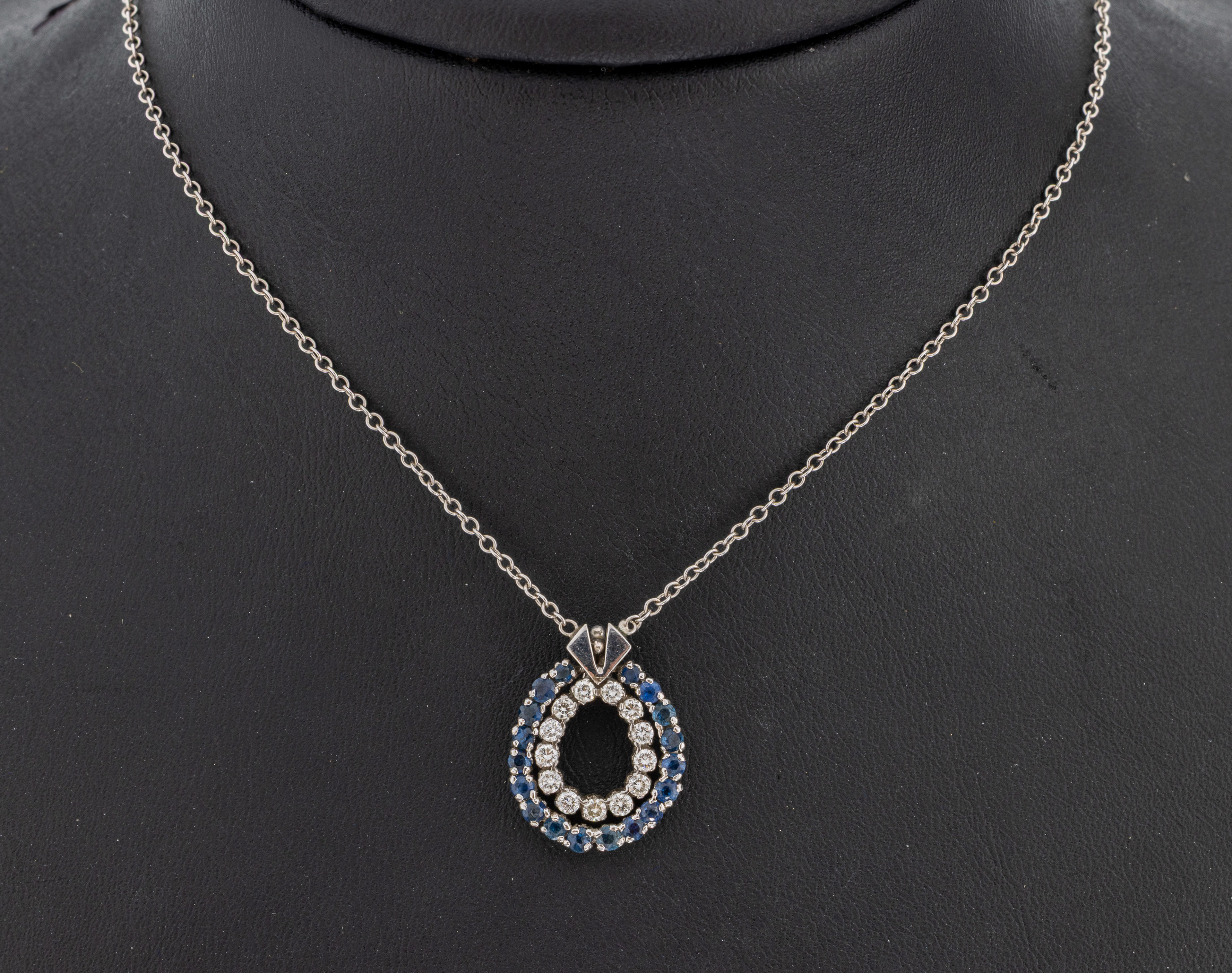 14 kt Gold Saphir-Brillant-Collier, WG 585/000, 18 rundfacett. Saphire zus. ca. 0.30