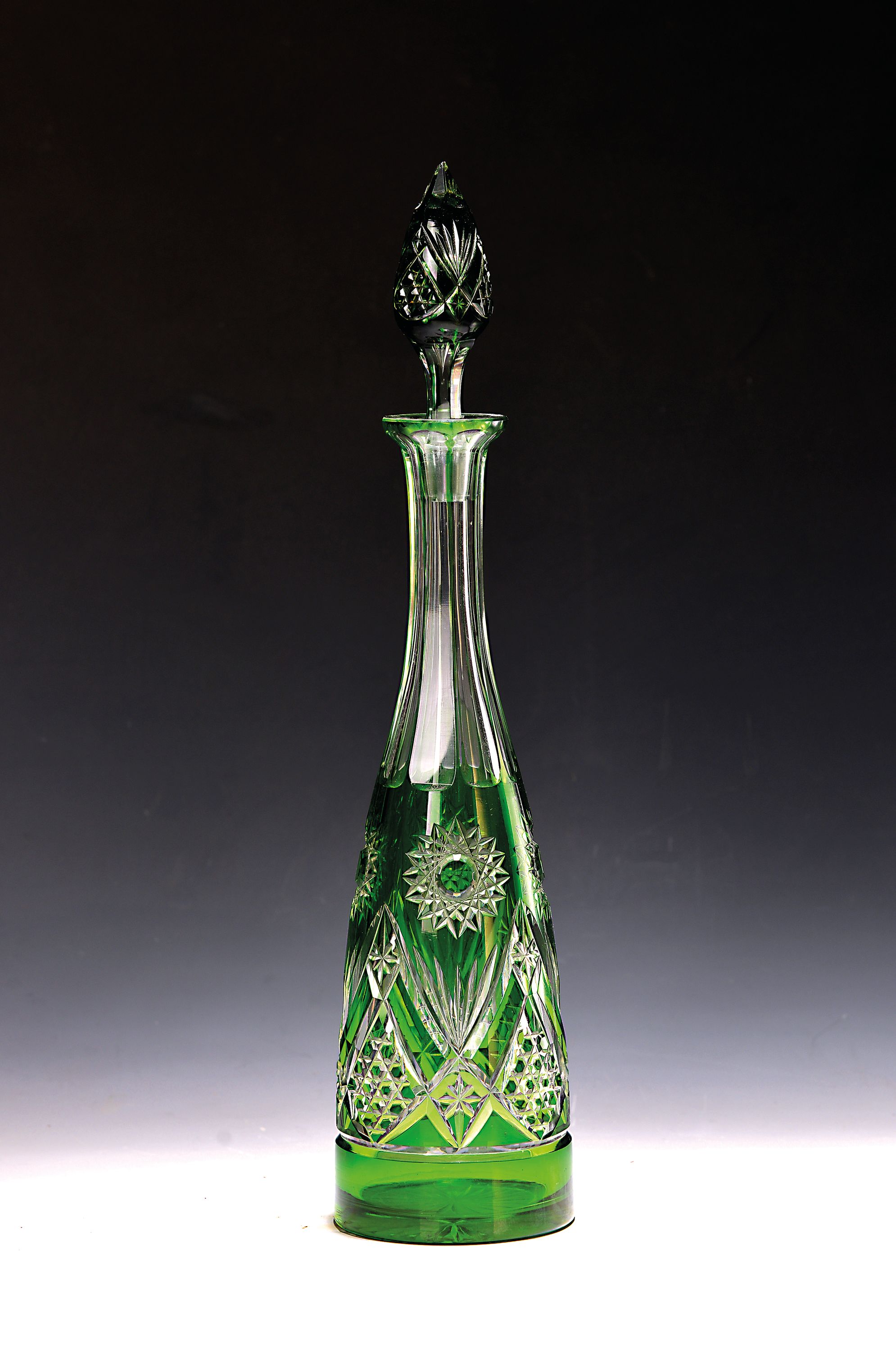 Dekanter bzw. Karaffe, böhmisch, Anfang 20.Jh., farbloses Glas, grün überfangen,