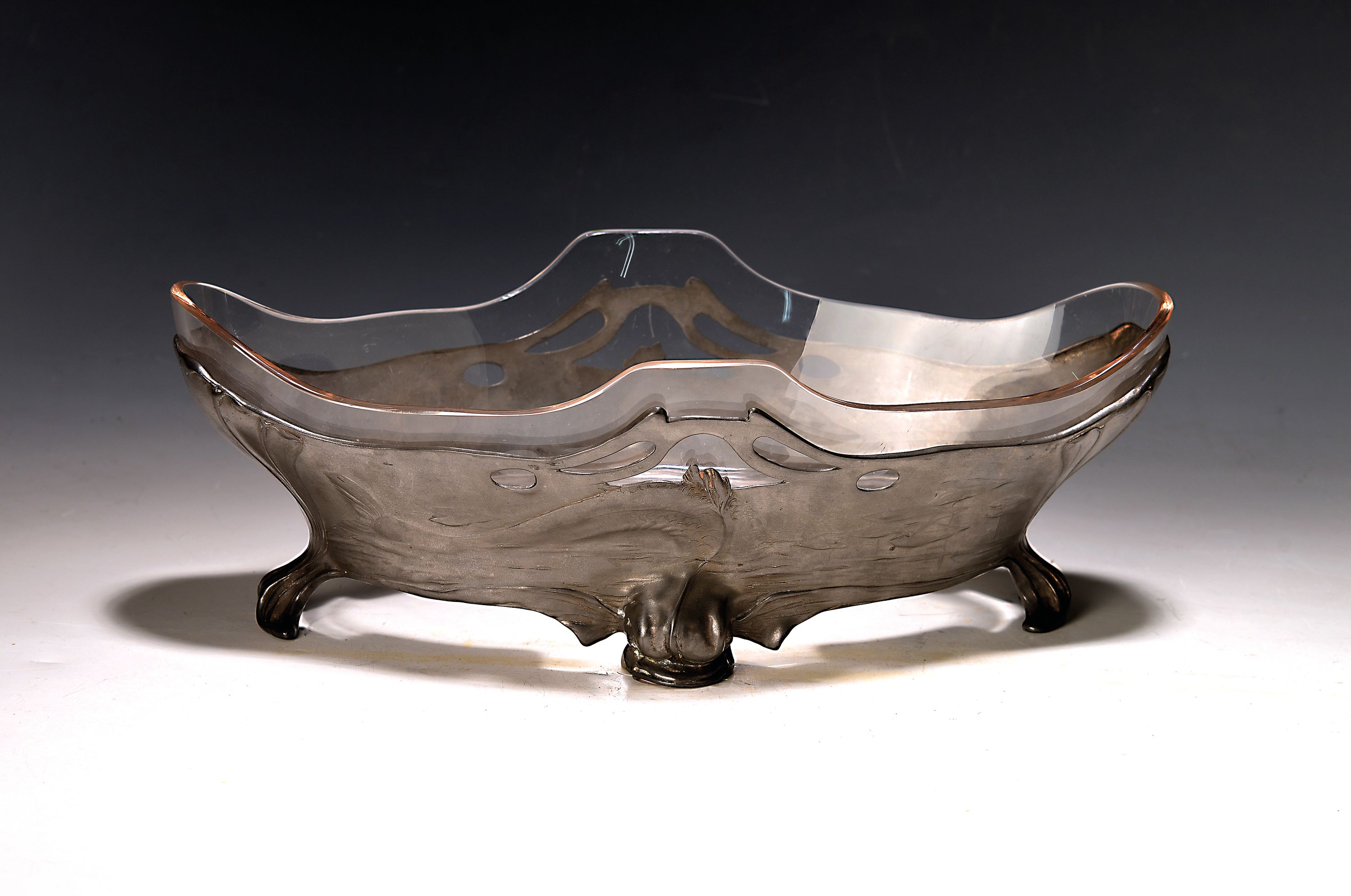 Jardiniere, Osiris Metallwarenfabrik, Walter Scherf, Nürnberg, um 1905, Zinn, mit