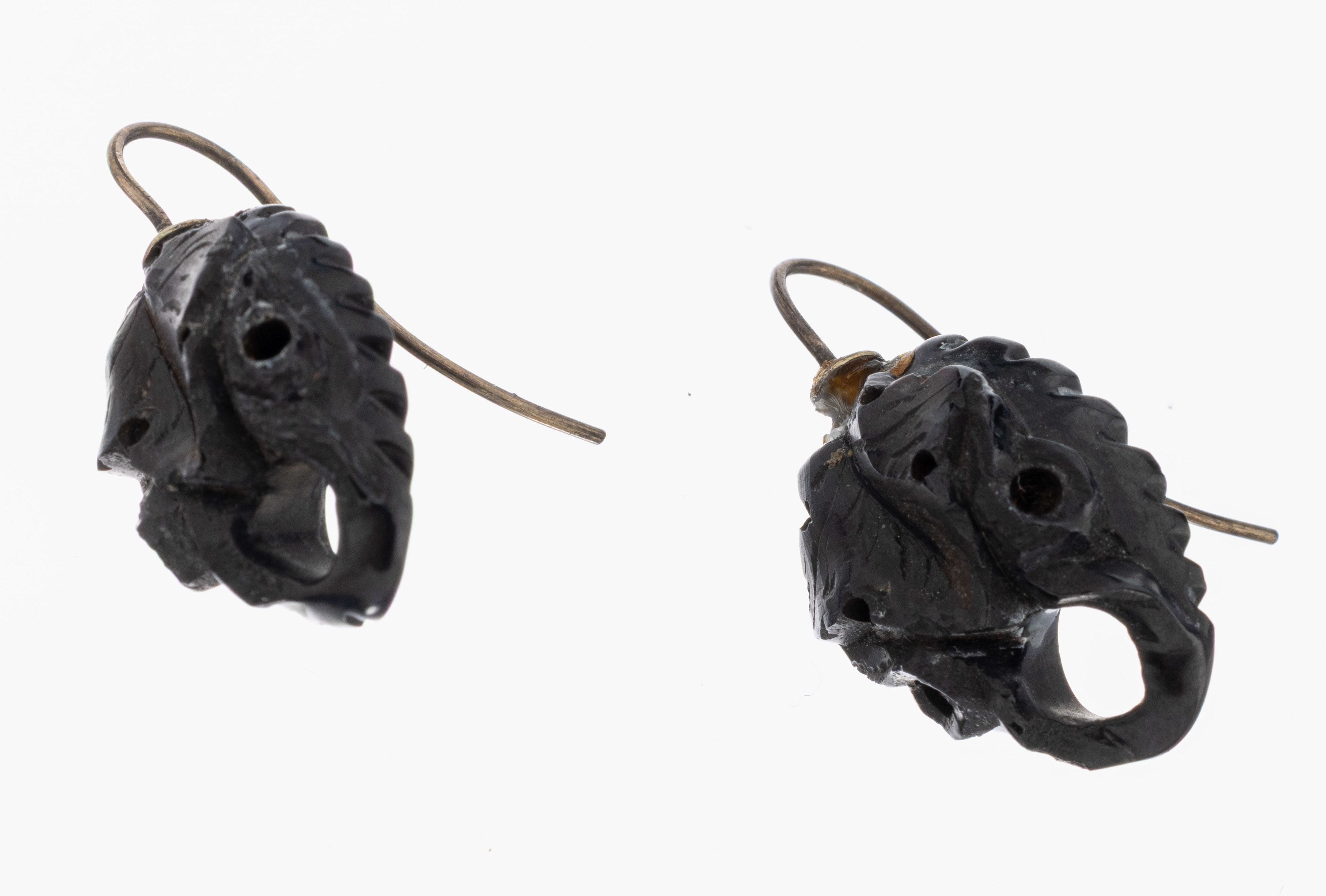 Paar Gagat-Ohrhänger, Idar-Oberstein um 1900, Weinlaubdekor, Einhänger fehlen,