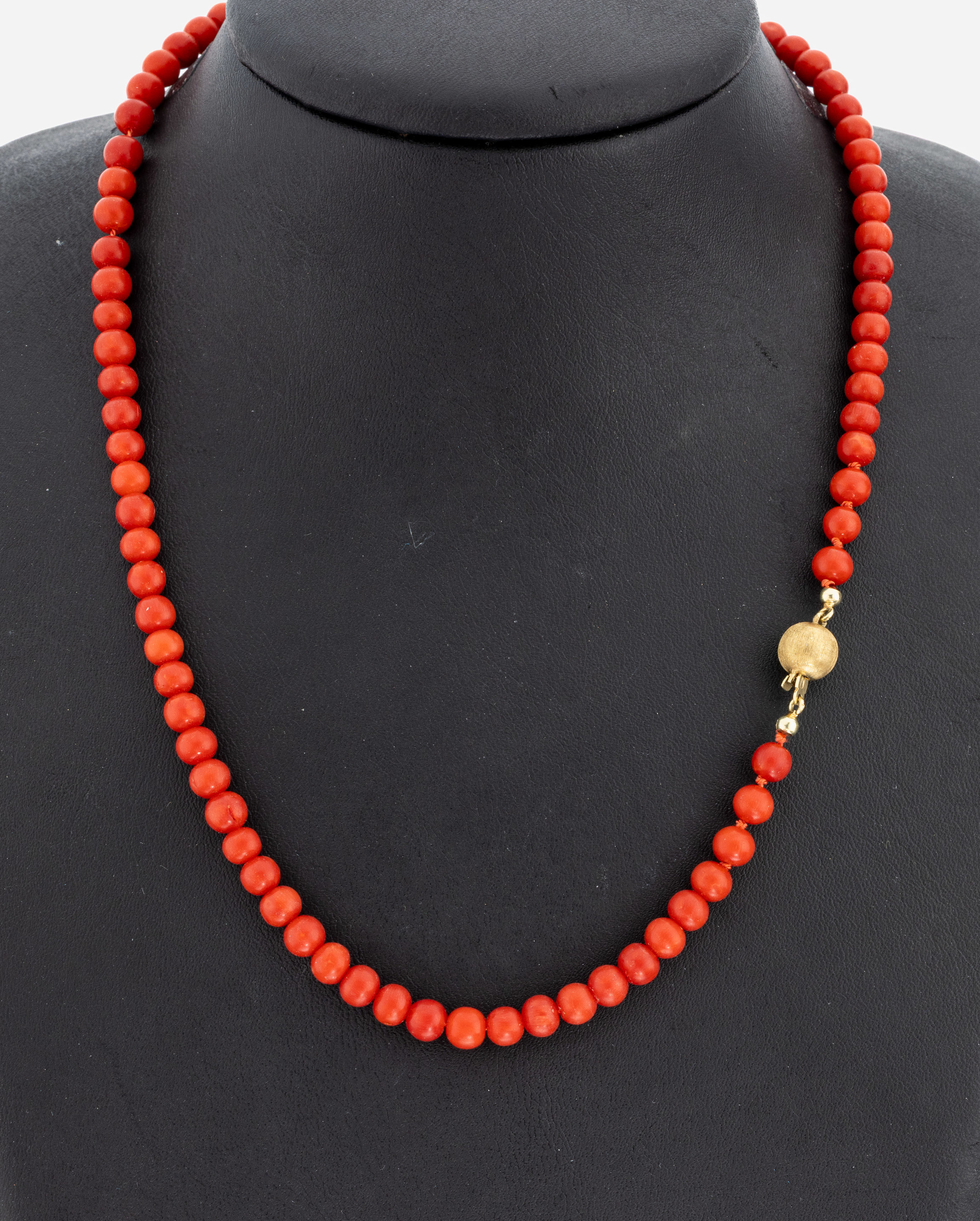Korallen-Collier mit 14 kt Gold Schließe, GG 585/000, Korallen-Kugeln, D. ca. 5.5