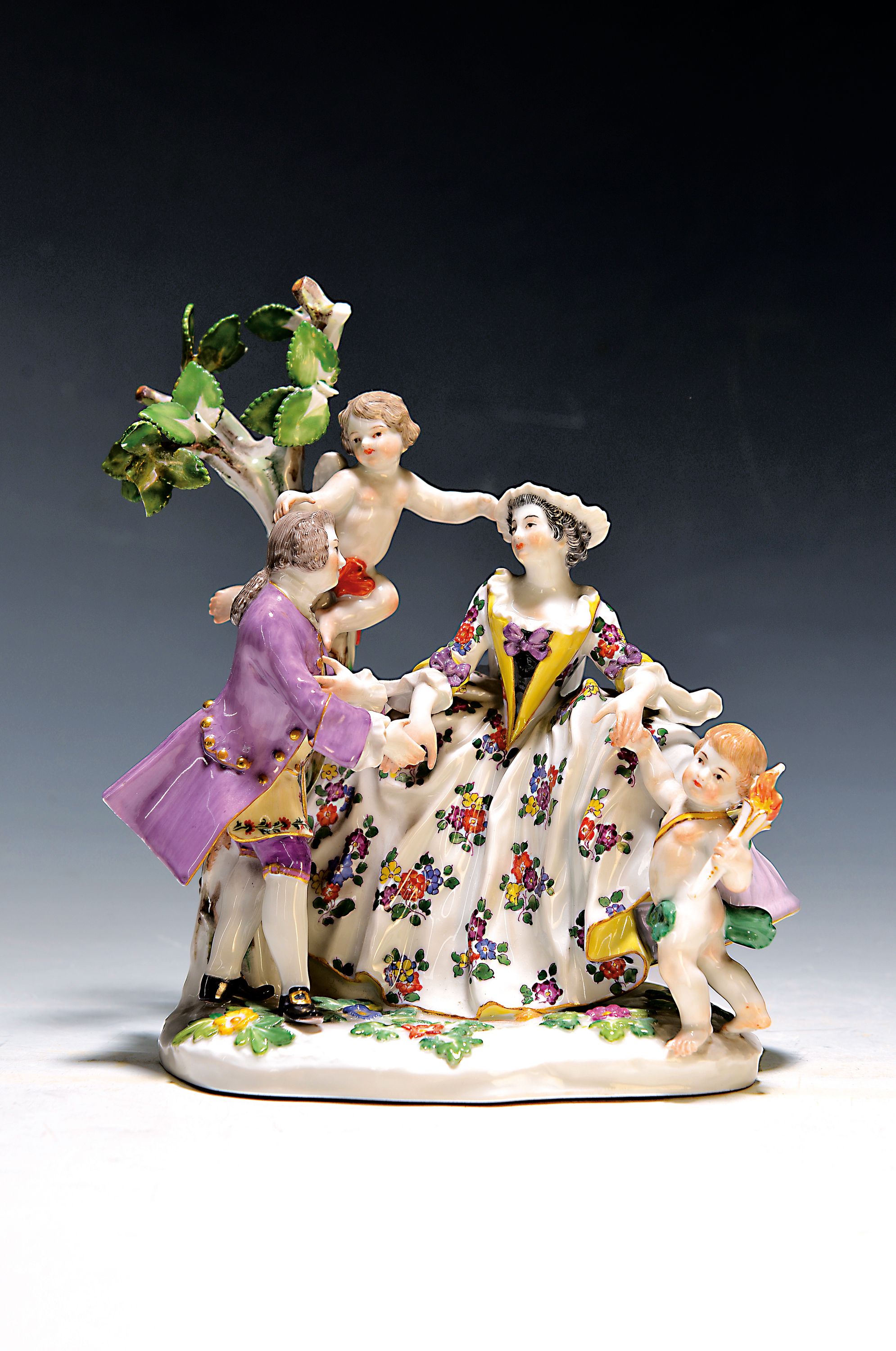 Porzellanfigurengruppe, Meissen, um 1900, galante Szenerie mit zwei Putten, bunt