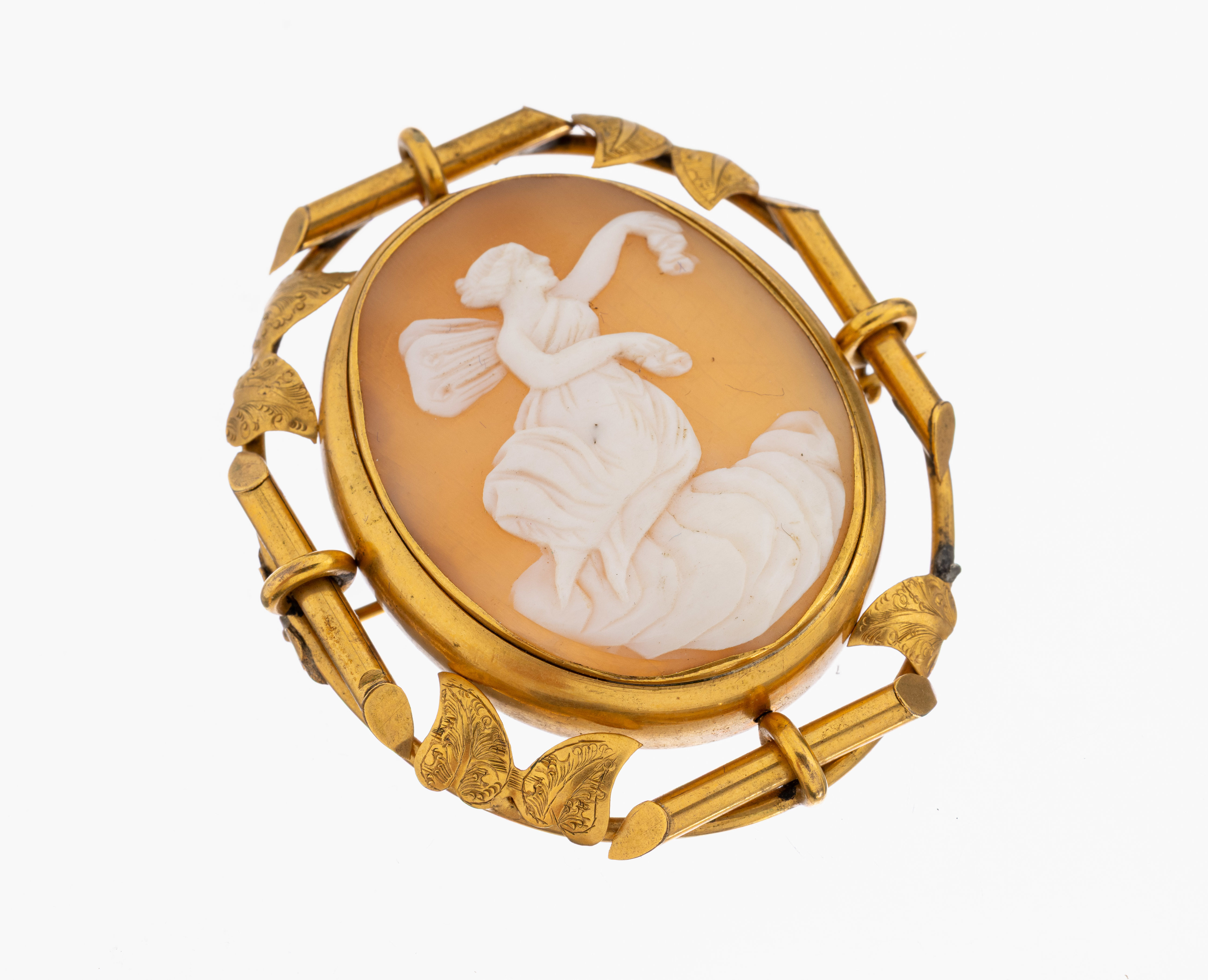 Kamee-Brosche, um 1890, Metall verg., mittig drehbares Element, Muschelkamee, Darstellung