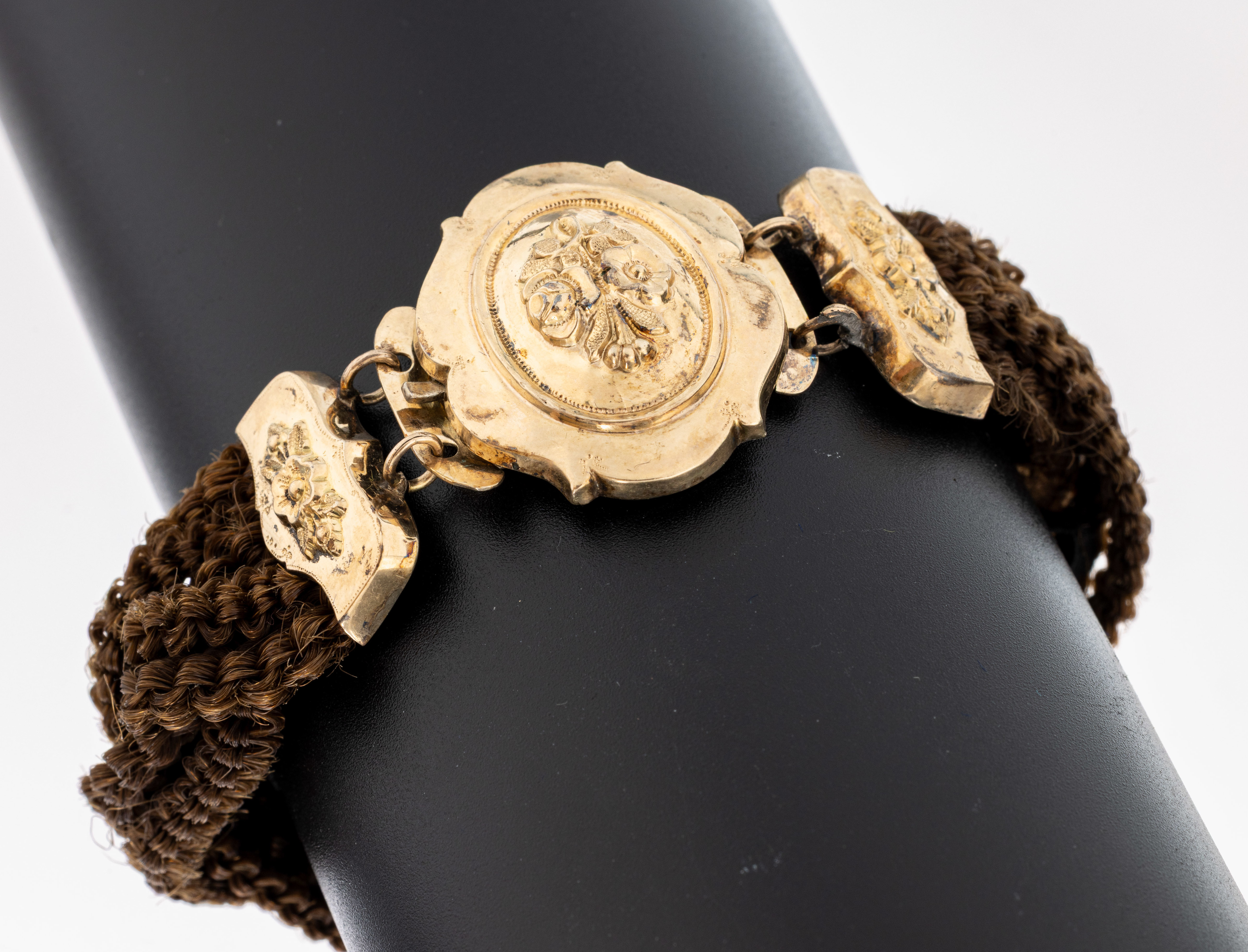 Biedermeier Haar-Armband mit Schaumgold Schließe, um 1830-40, 6-rhg. geflochtenes