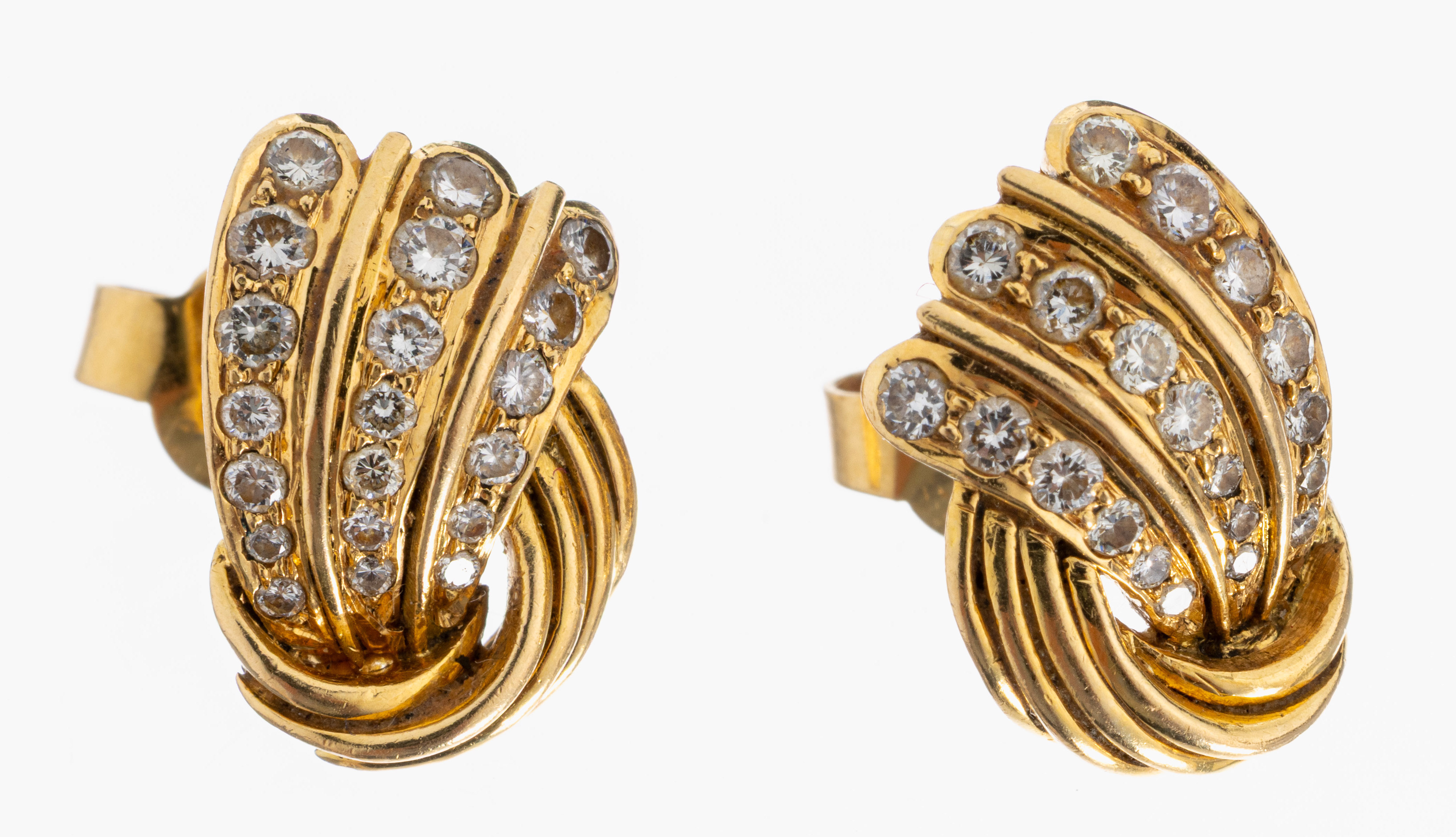 Paar 18 kt Gold Brillant-Ohrstecker, GG 750/000, 38 Brillanten zus. ca. 0.38 ct,