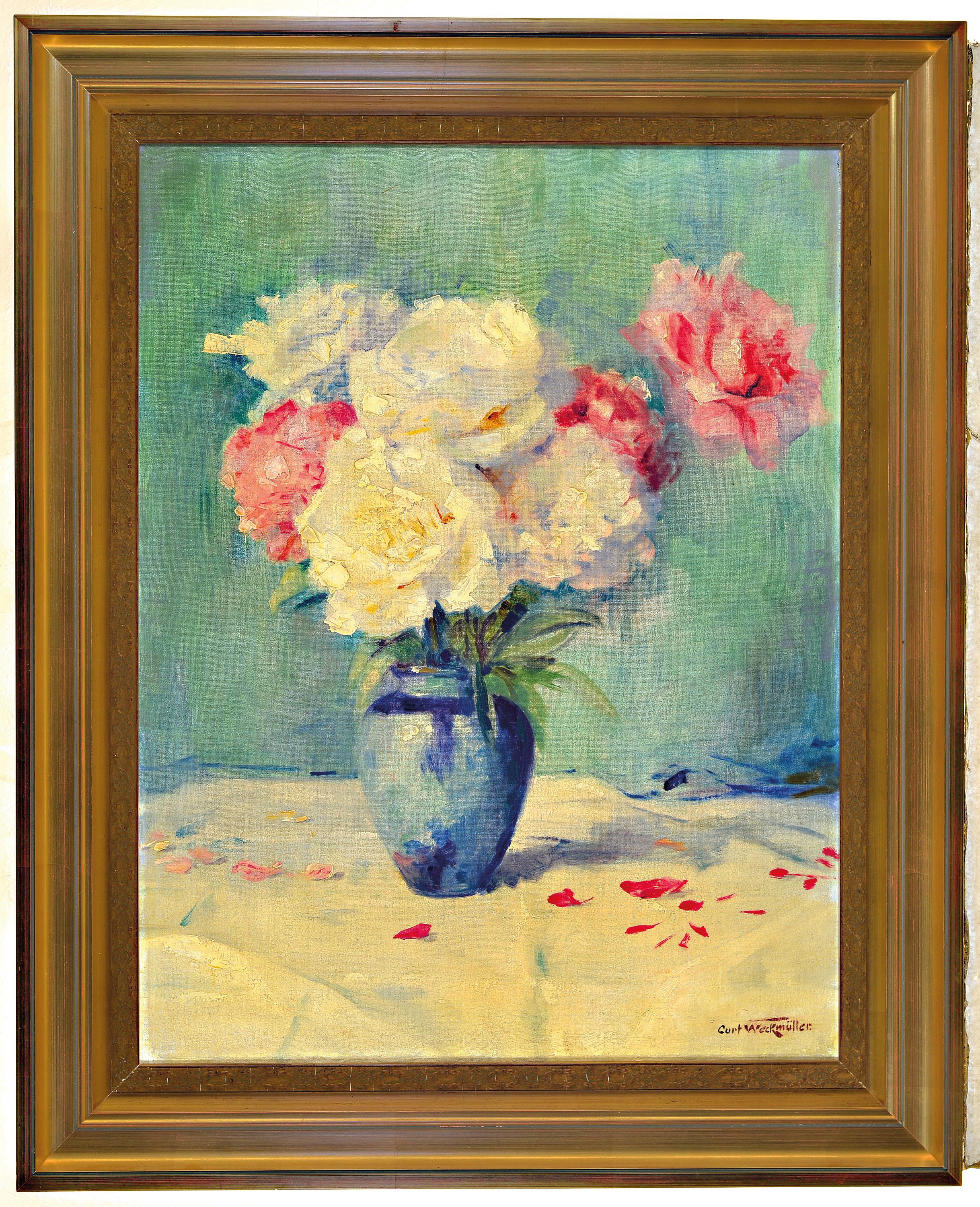Curt Weckmüller, geb. 1877 Schöndorf, Stillleben mit weißen und rosa Rosen, Öl/Lwd,