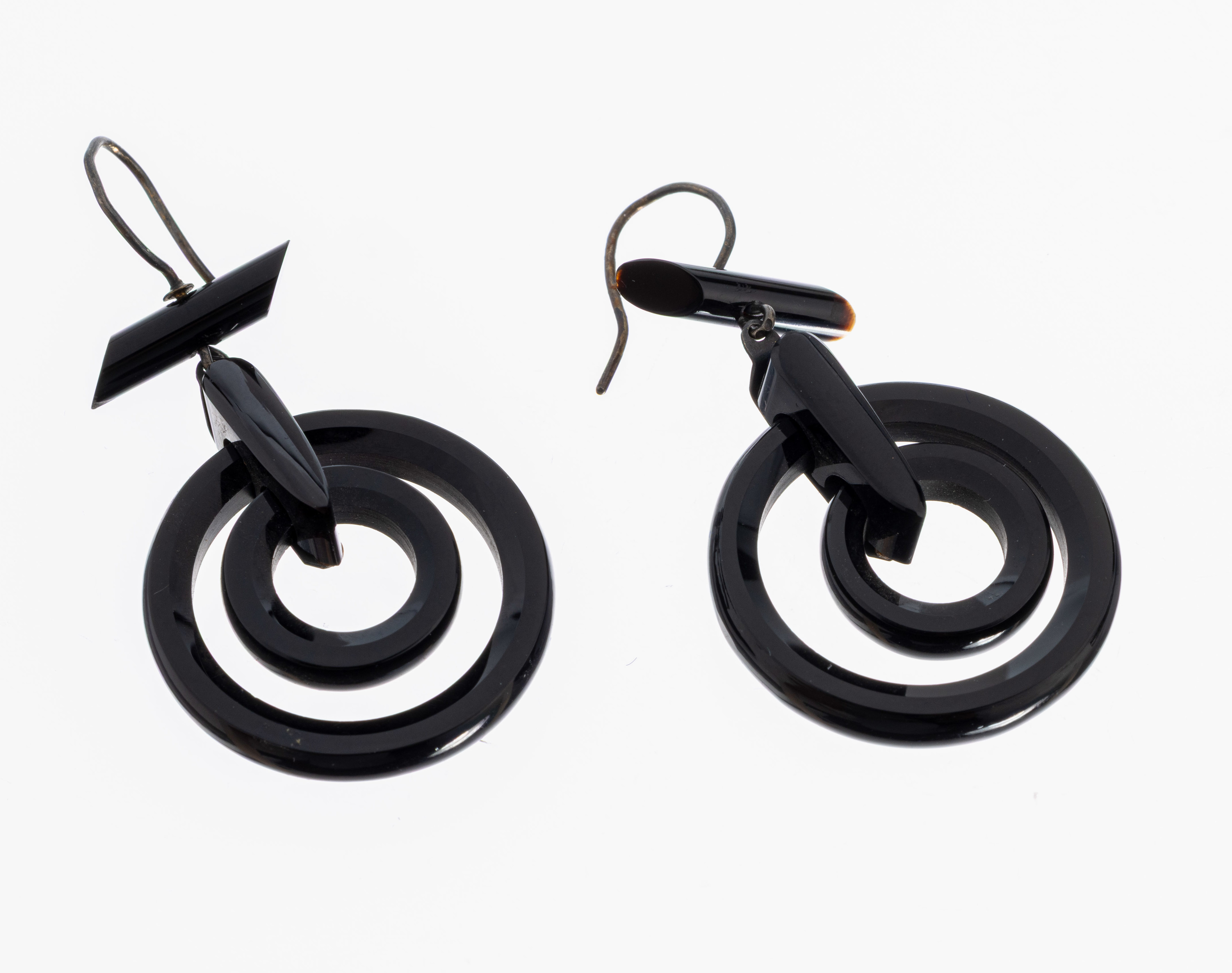 Paar Onyx-Ohrhänger, um 1920, länglich bewegl. aus Kreisen und Stäben, L. ca.