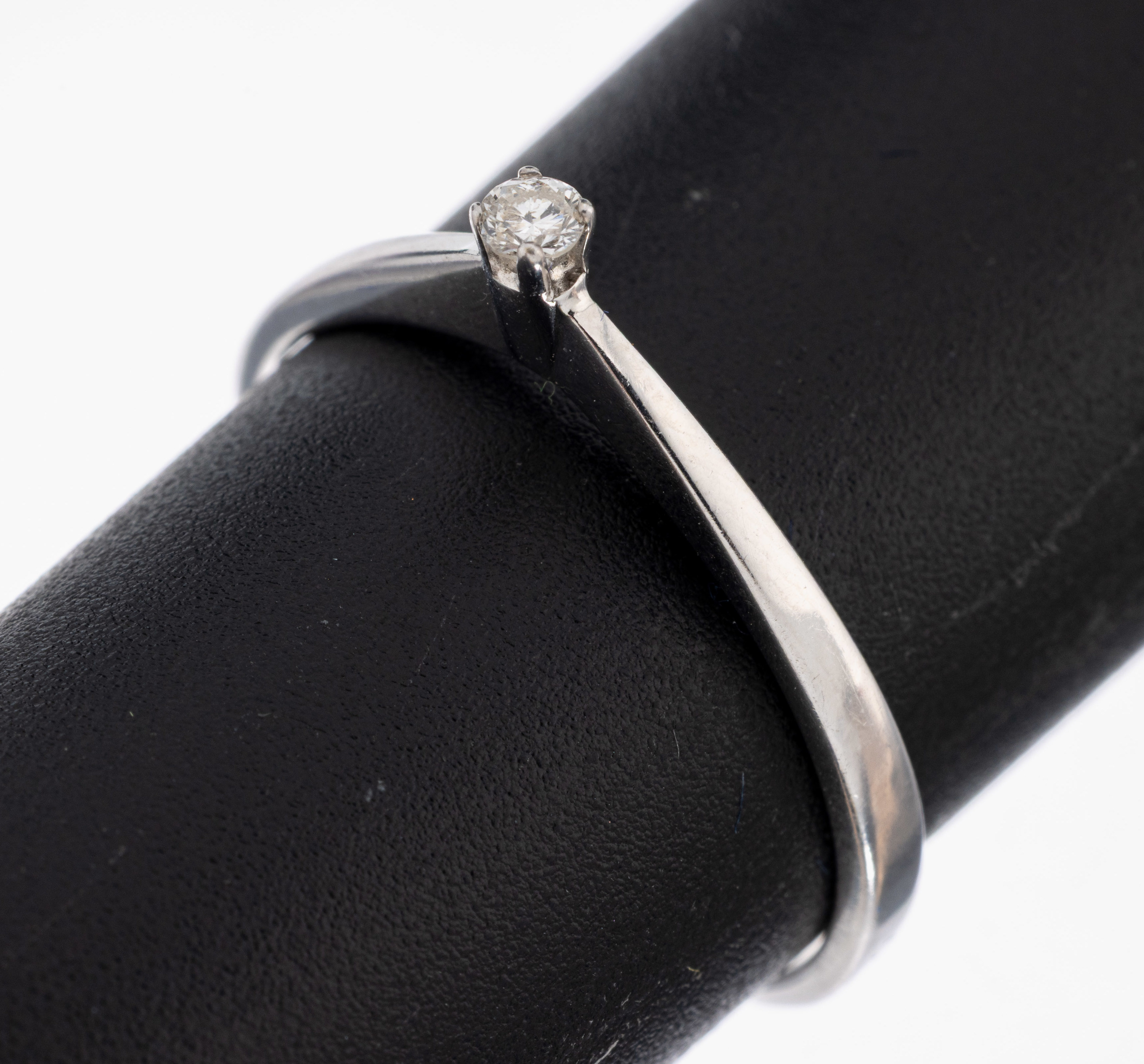 14 kt Gold Brillant-Ring, WG 585/000, erhaben gefasster Brillant ca. 0.05 ct Weiß/p,RW