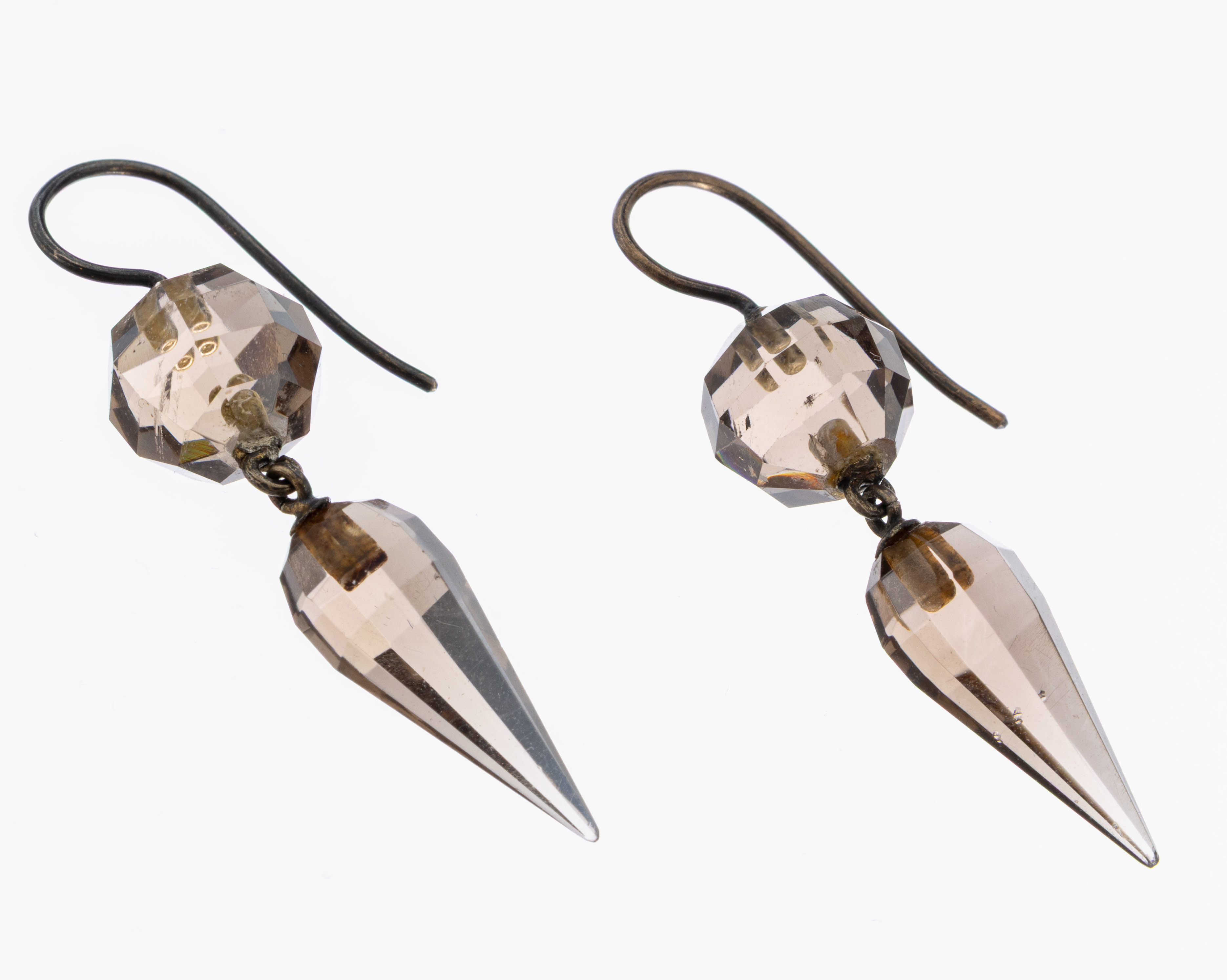Paar Rauchquarz-Ohrhänger, Idar-Oberstein um 1900, länglich bewegl., facett. Kugeln
