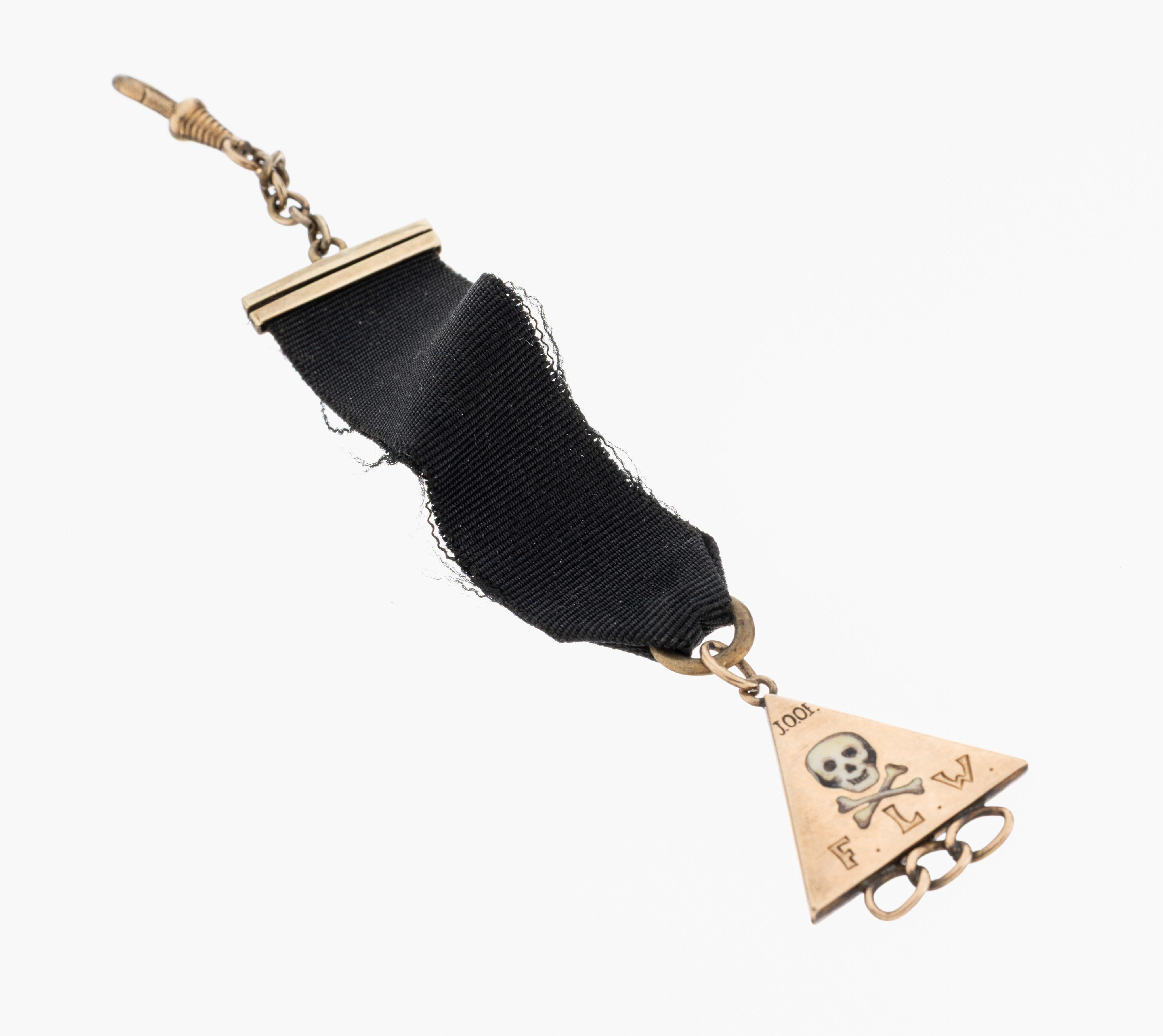 Odd Fellows Bierzipfel, um 1900, schwarzes Stoffband, dreieckige Abhängung, GG 333/000