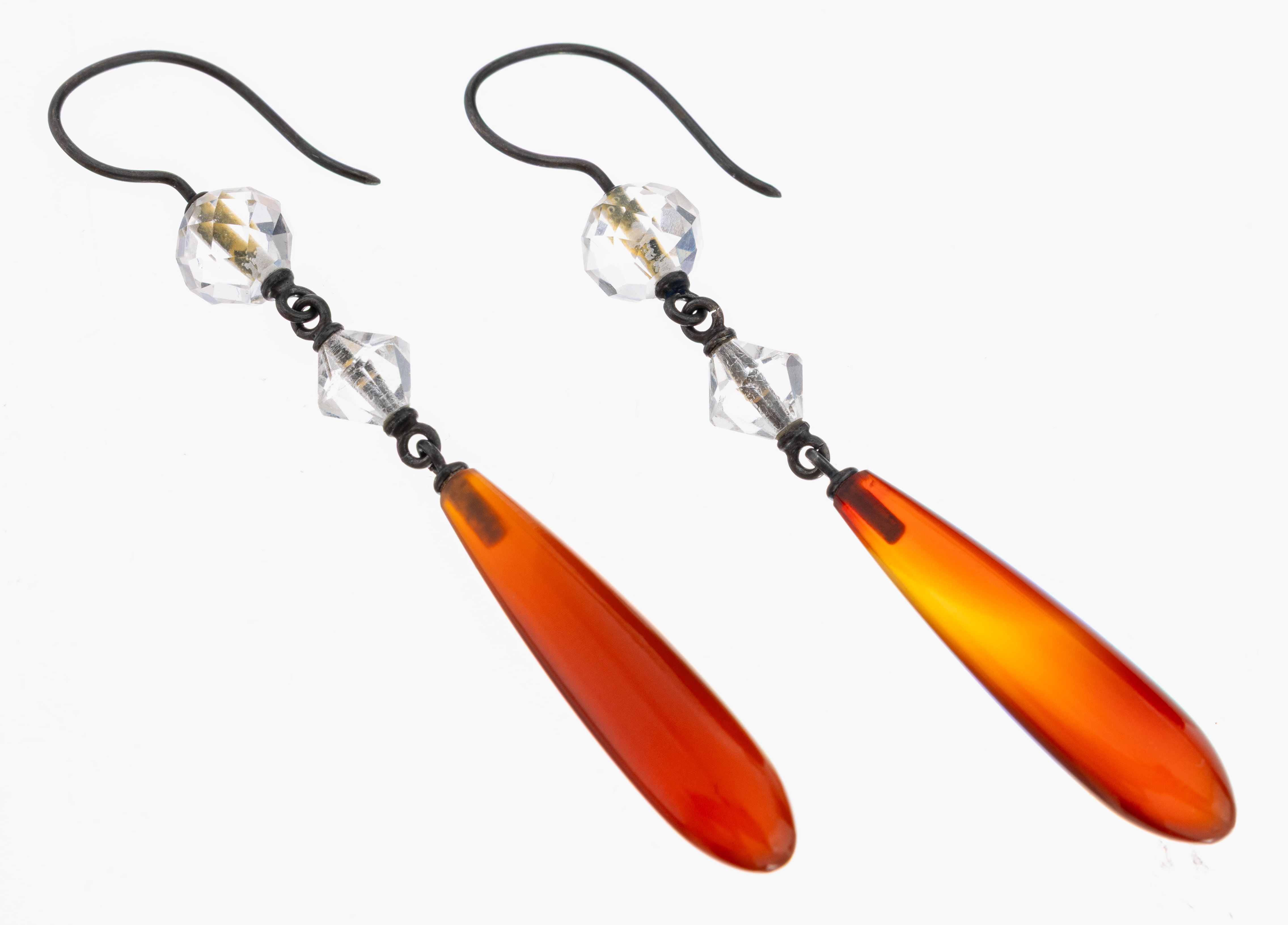 Paar Bergkristall-Karneol-Ohrhänger, Idar- Oberstein um 1900, länglich bewegl.,