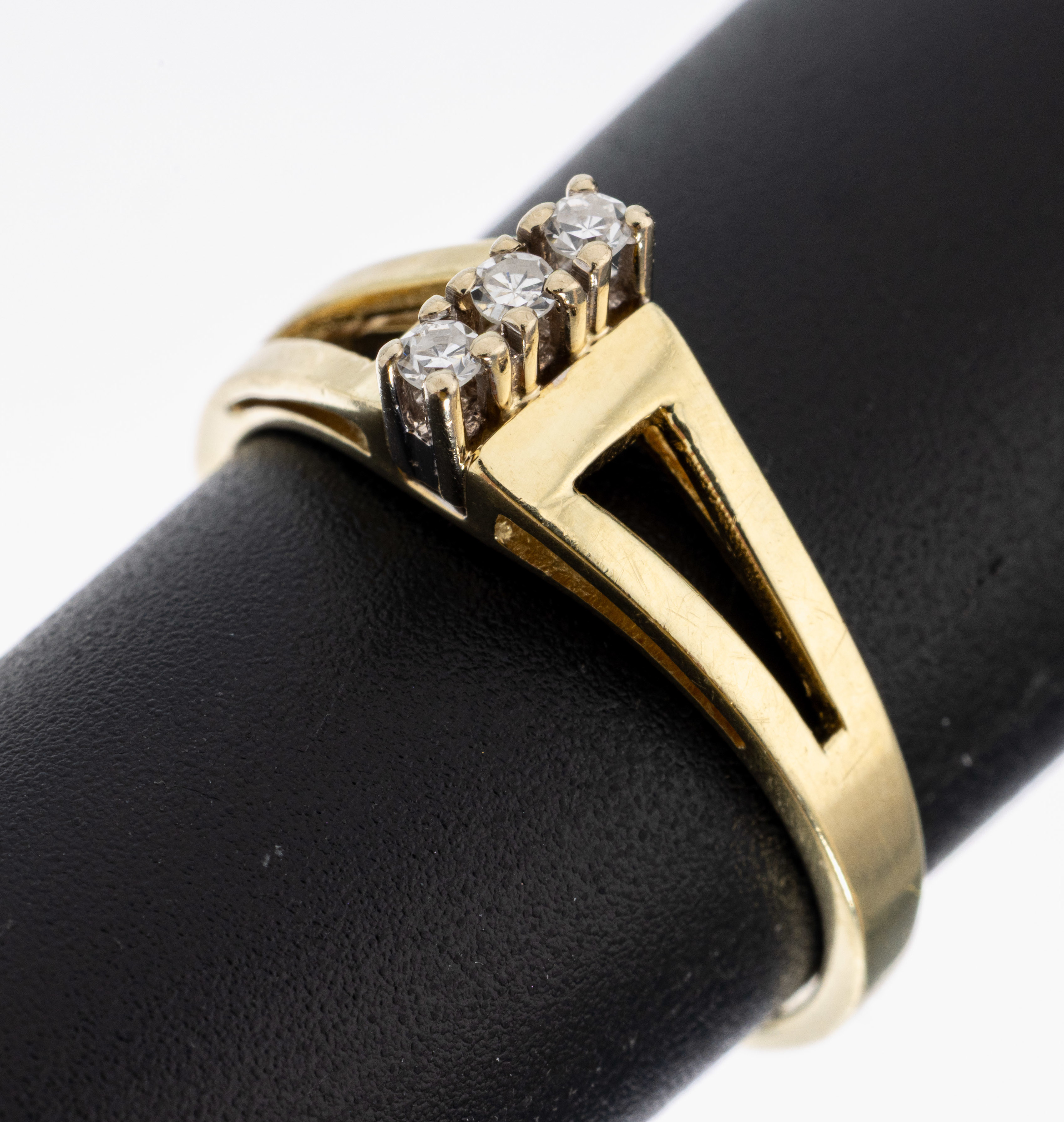 14 kt Gold Diamant-Ring, GG/WG 585/000, 3 erhaben in WG gefasste 8/8-Diamanten zus.