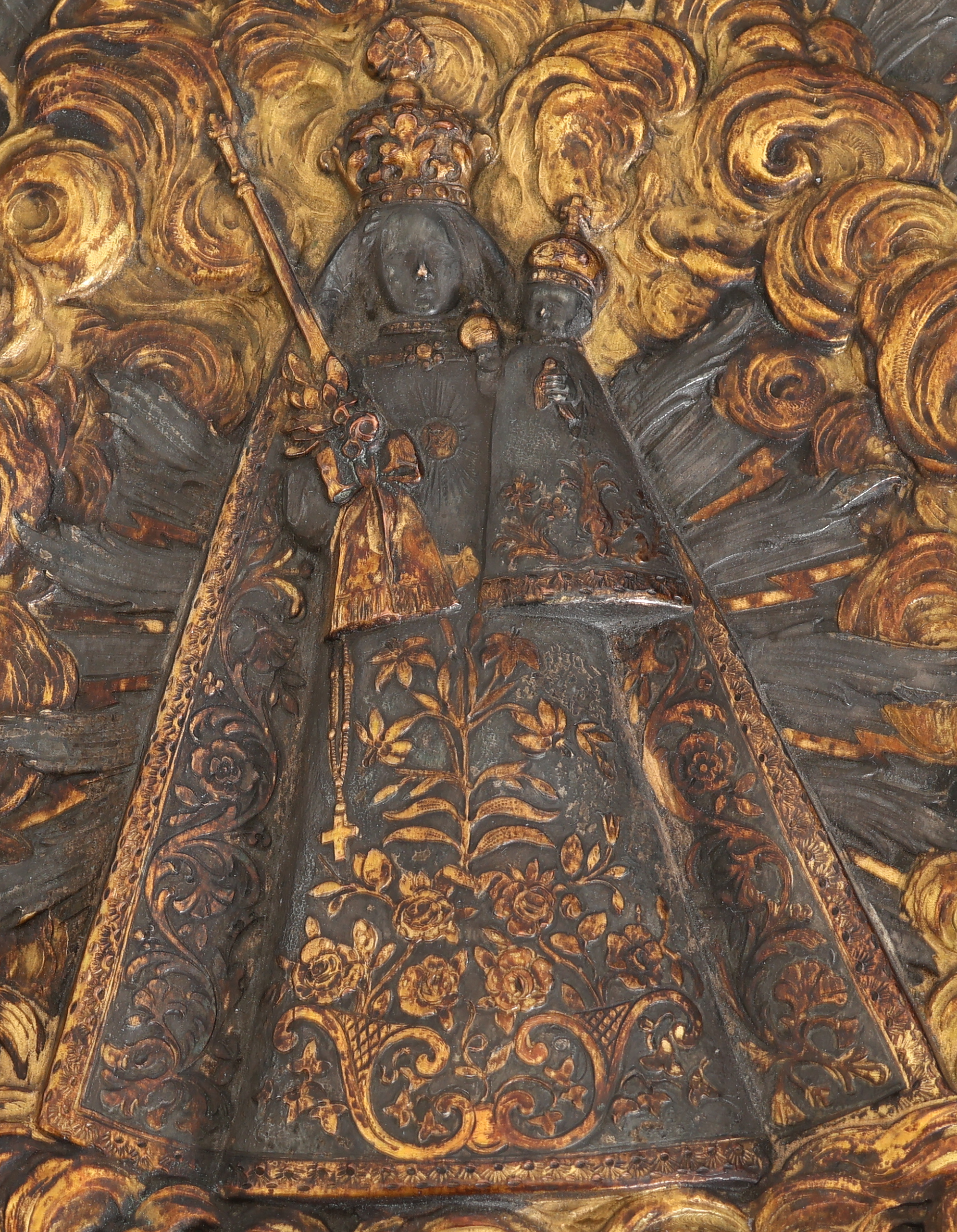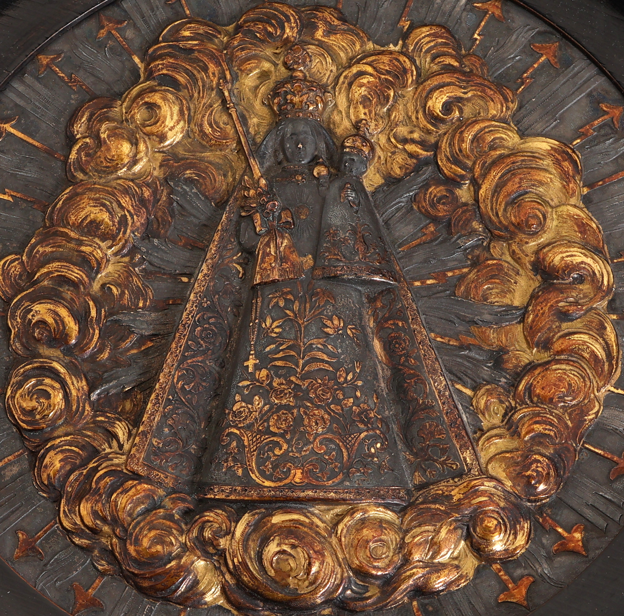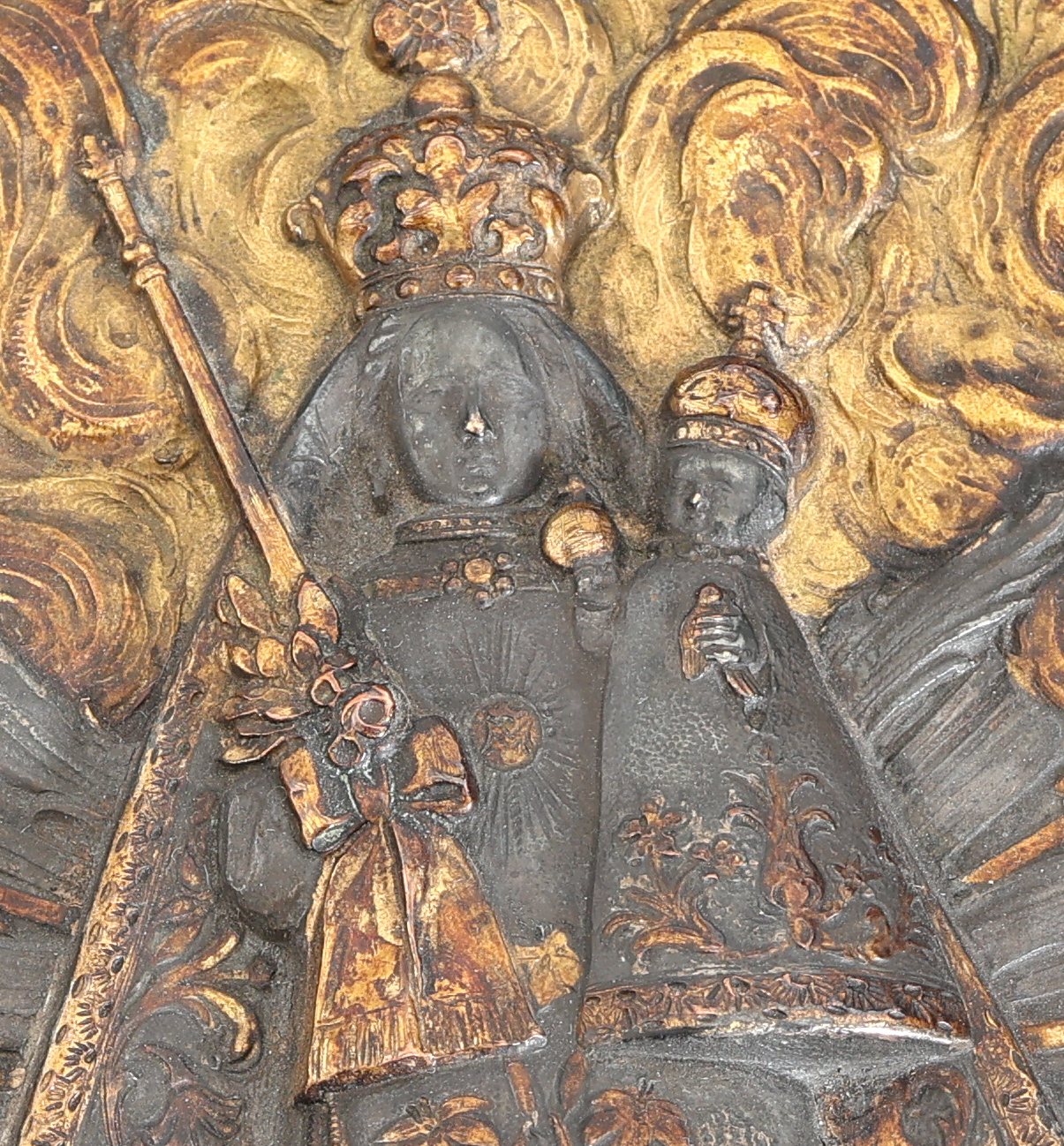 Russische Ikone, 1880er Jahre, Messingplakette, Darstellung der Jungfrau Maria mit