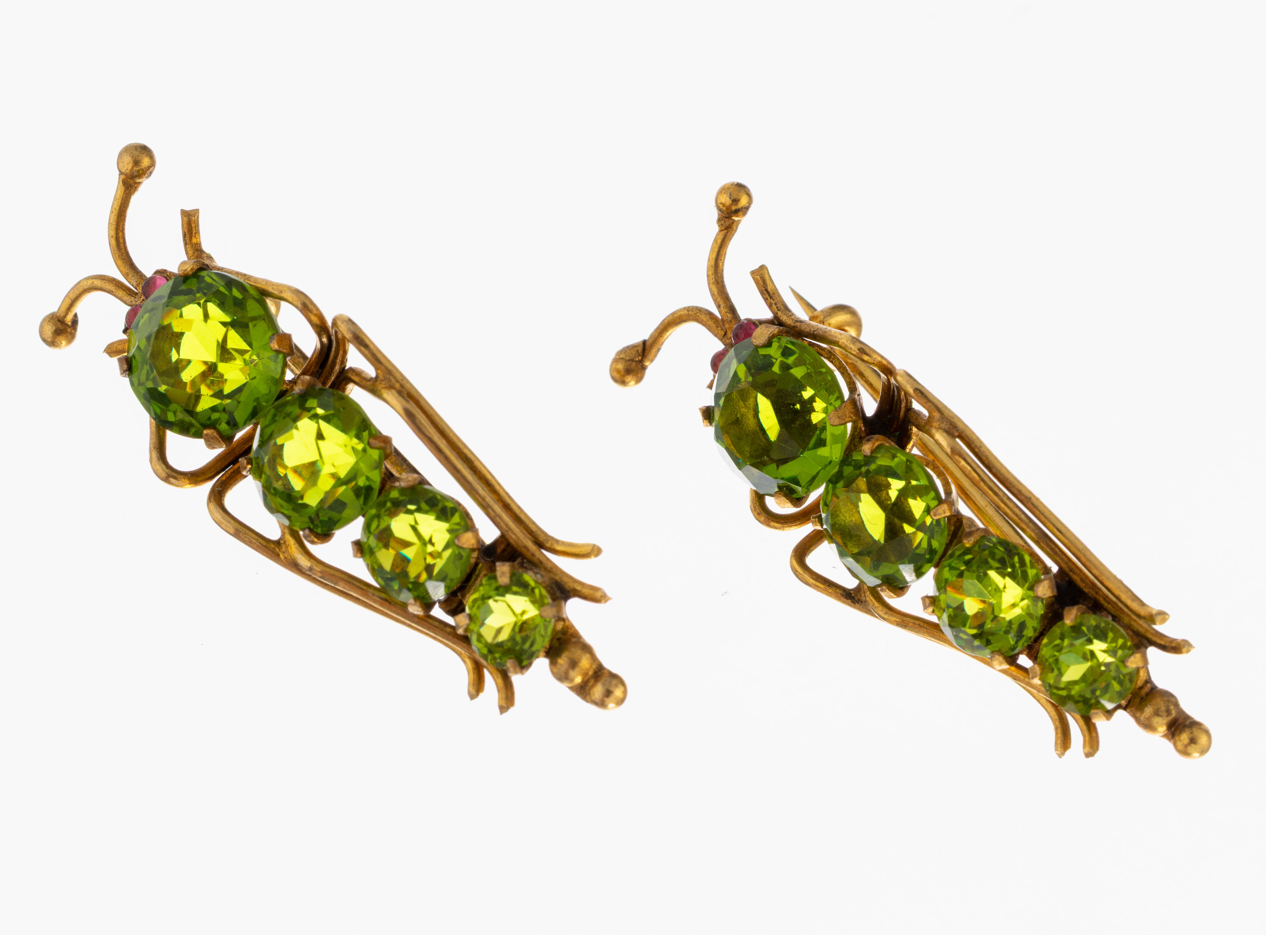 Peridots im Verlauf, Augen kl. runde Turmalin-Cabochons, L. ca. 3.2 cm