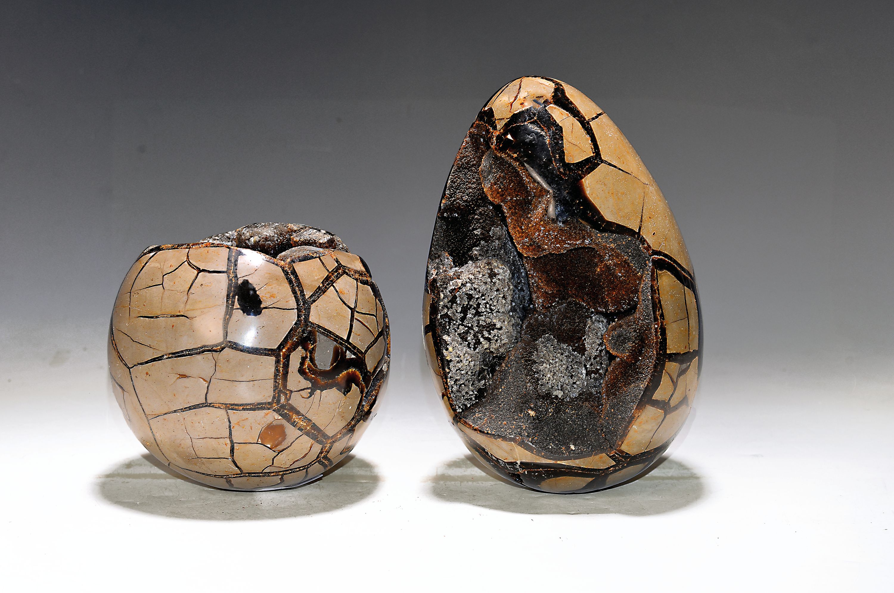 Septaria-Sphäre und sog. "Drachenei", Oligozän, ca. 23 bis 33 Mio. Jahre alt, versteinertebzw.